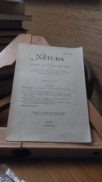 NATURA. RIVISTA DI SCIENZE NATURALI. MILANO 15 OTTOBRE 1983. VOLUME 74. FASCICOLO I - II