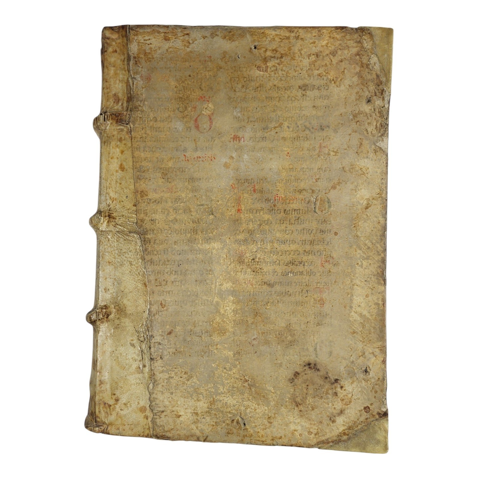 Coeval vellum binding with attractive manuscript fragments to covers.