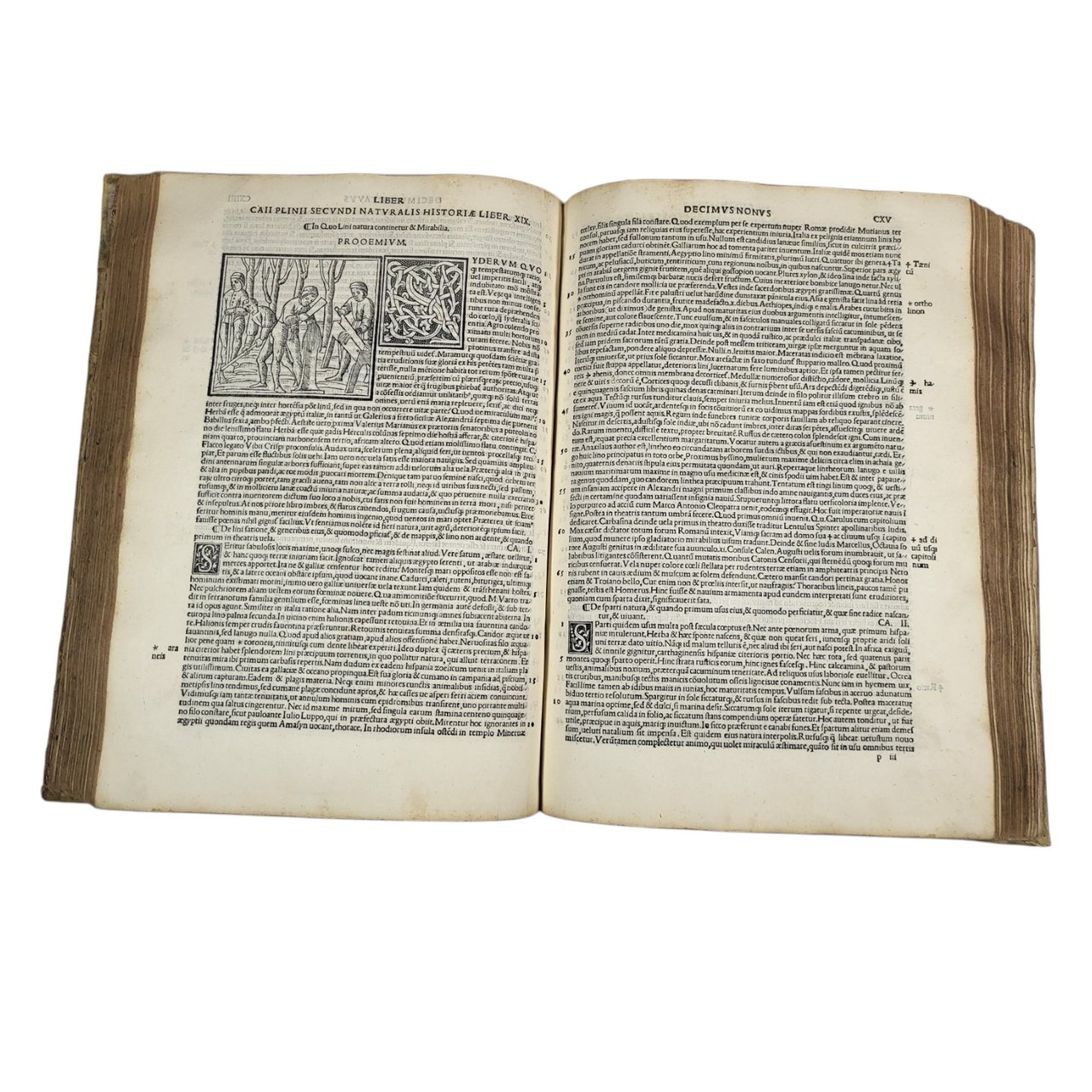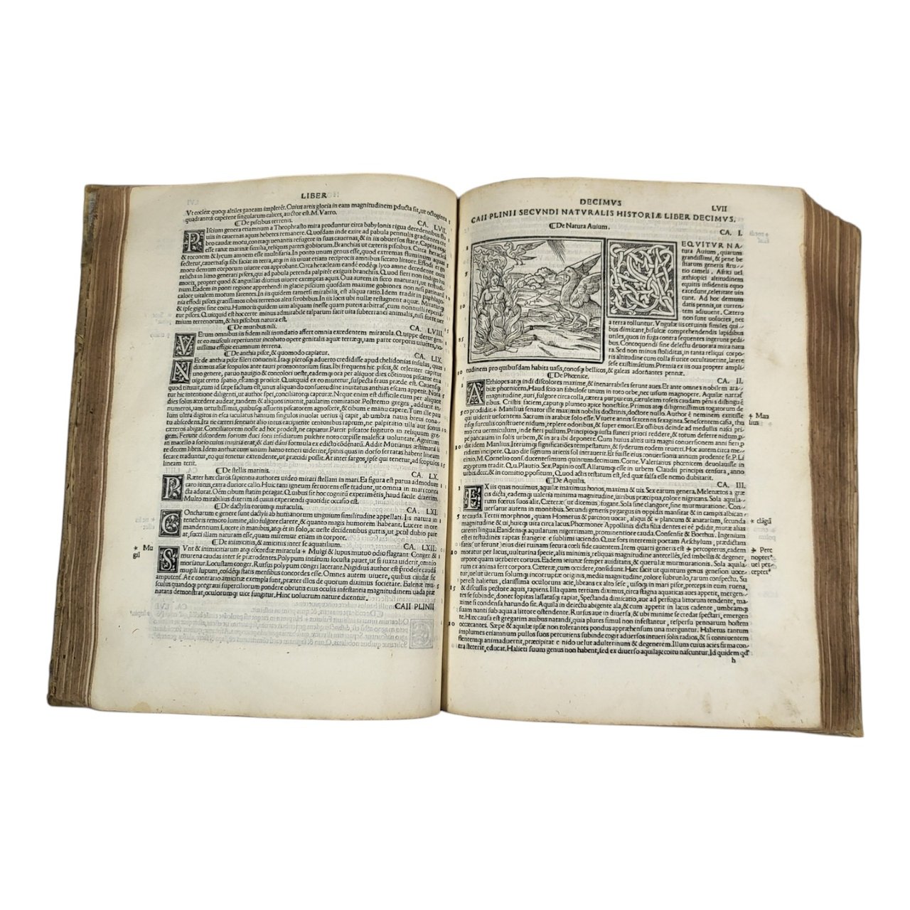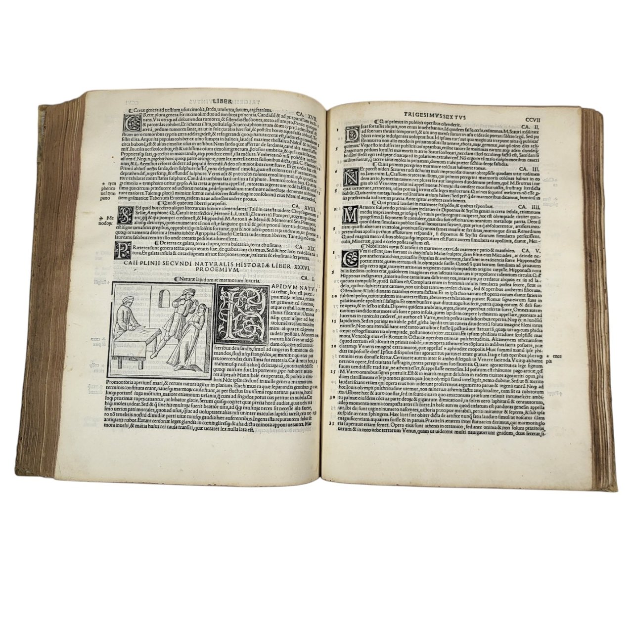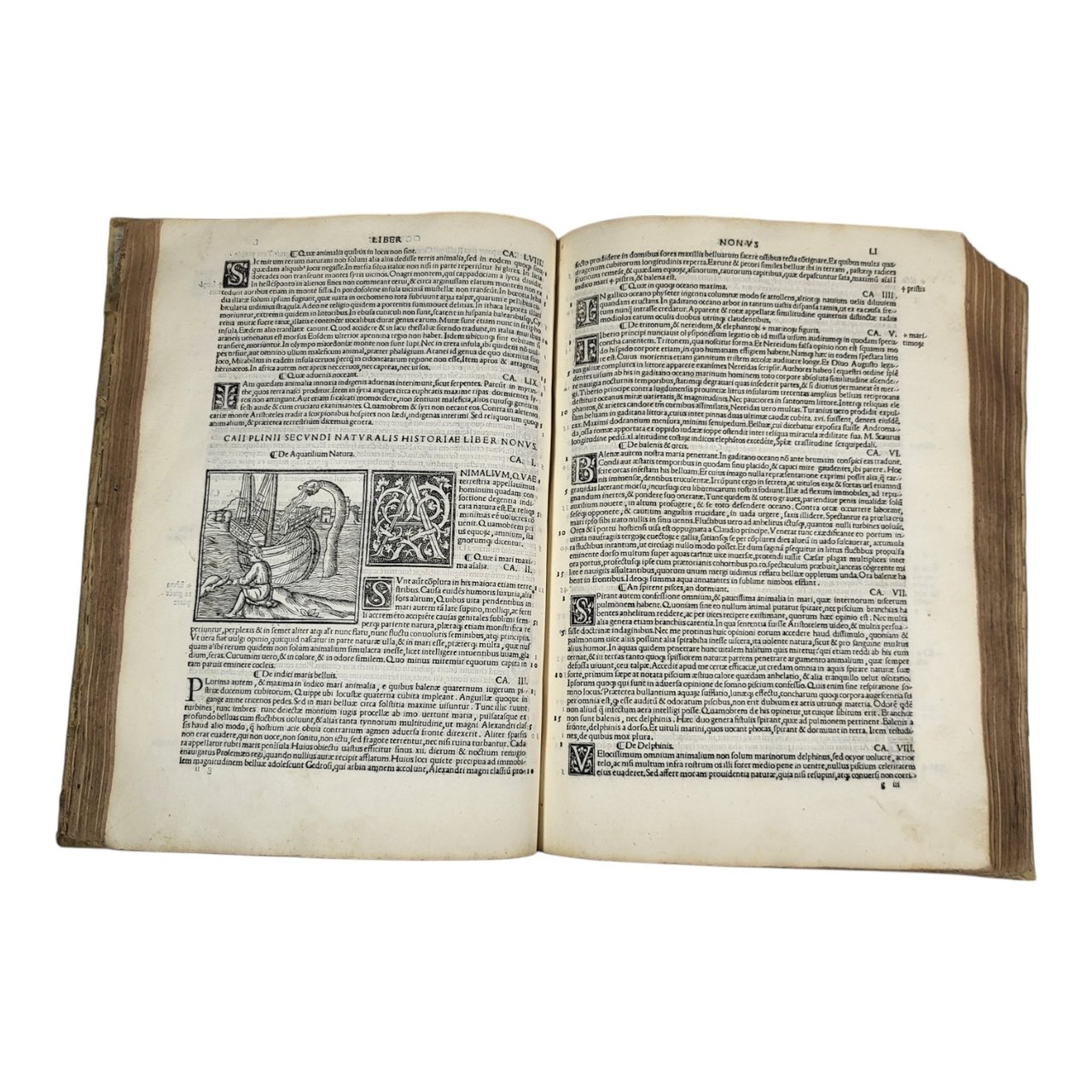 Splendid illustrated and genuine Sessa edition of « the most popular natural history ever written" by Pliny The Elder, here with the commentary of the humanist Barbaro. Two complete parts, collected in a single folio volume, with two elaborate woodcut title pages printed in red and black. Contains charming 32 beautiful woodcut illustrations in the text, as well as 3 small maps and numerous large elegant initials, which made this edition published and printed by the Sessa family one of the most successful of the 16th century.