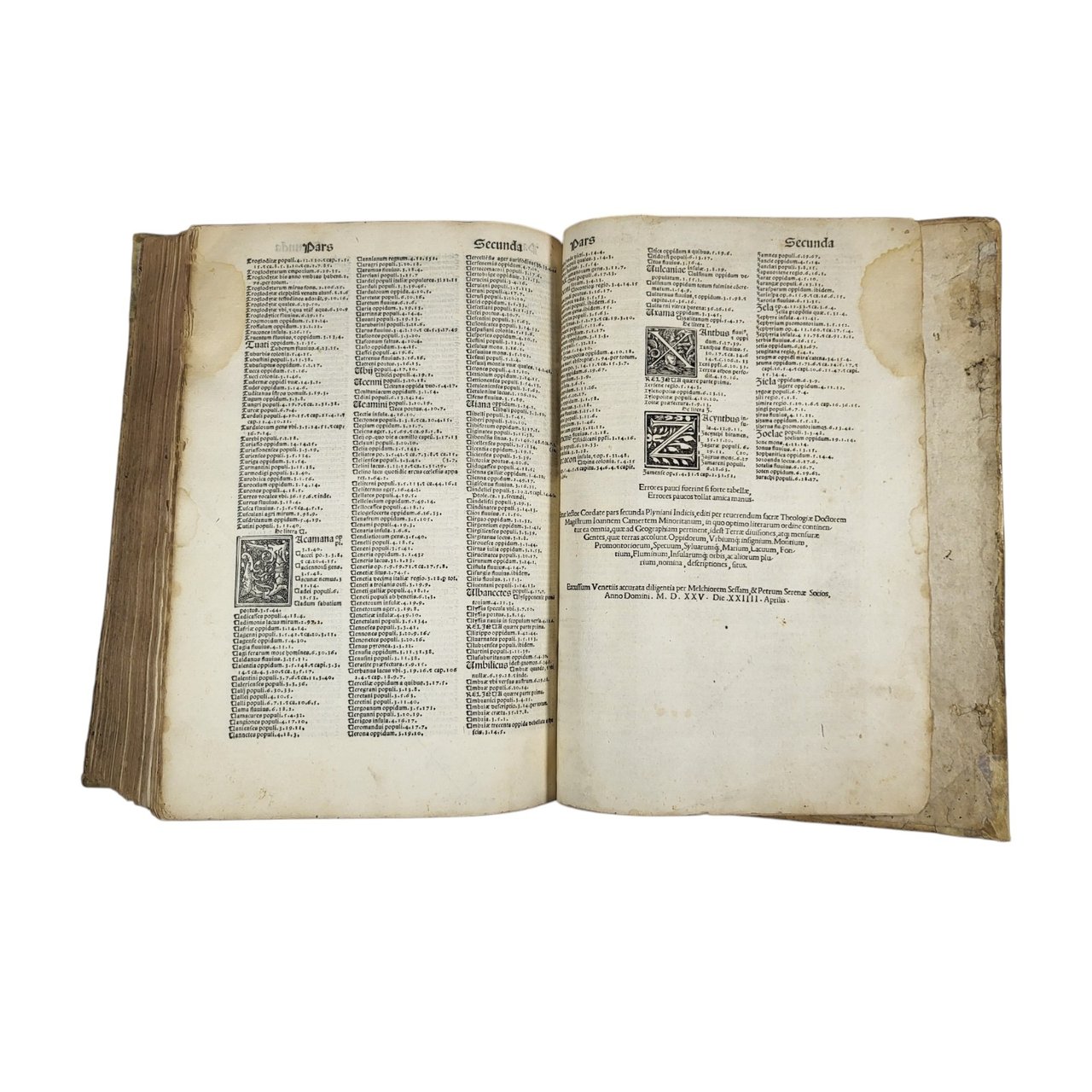 - [Venezia : Melchiorre Sessa il vecchio & Pietro Ravani] (Impressum Venetiis : summa diligentia per Melchiorem Sessam, & Petrum Serenae, socios, 1525 die XXIIII Martii). Al colophon degli Indici di Camers (Excussum Venetiis : per Melchiorem Sessam, & Petrum Serenae socios, 1525 die XXIIII Aprilis)