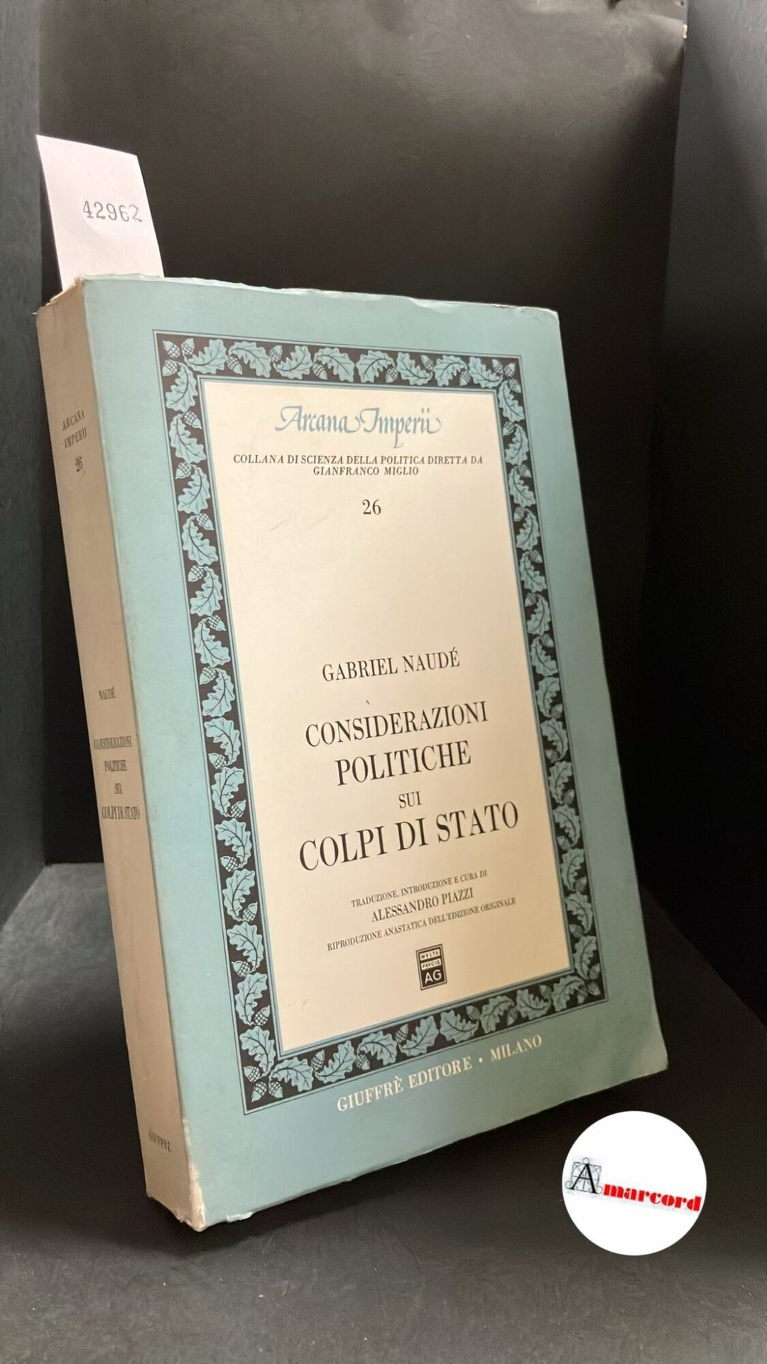539 Naudé, Gabriel Naudé, Gabriel. , and Piazzi, Alessandro. Considerazioni politiche sui colpi di Stato Milano Giuffrè, 1992. , Giuffrè 1992 italiano, in ottavo 292 42962