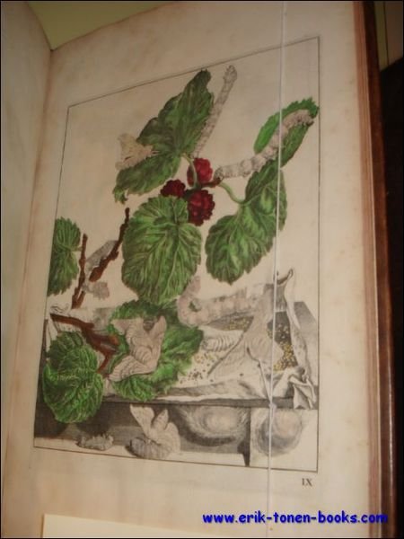 Gebonden in kalfsleder (recent door een befaamde boekbinder), in-folio, (4) +34+ (2)pp.+33+(2) Rijkgevuld aan oorspronkelijke handgekleurde gravuren, met een mooie titelbladvignette en 33 fraaie volbladige gegraveerde en gekleurde platen. Dit is de eerste complete editie. De gravuren zijn gegraveerd door l'Admiral. De gravures vertonen diertjes en vooral vlinders op planten, bomen of bloemen.