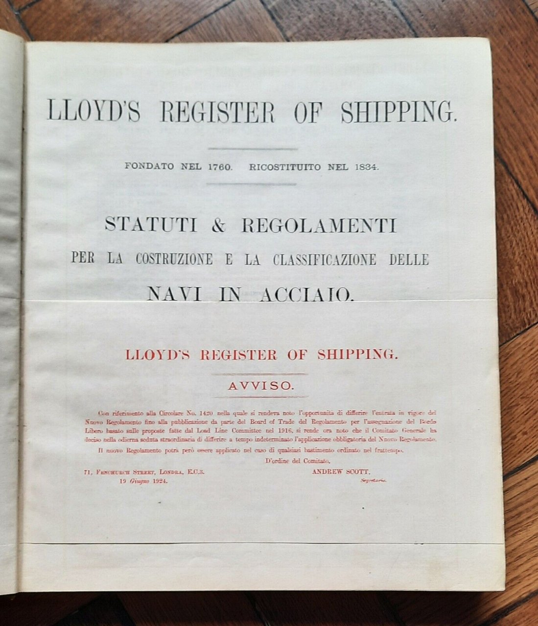 NAVI IN ACCIAIO STATUTI E REGOLAMENTI 1926 LLOYDS REGISTER OF SHIPPING