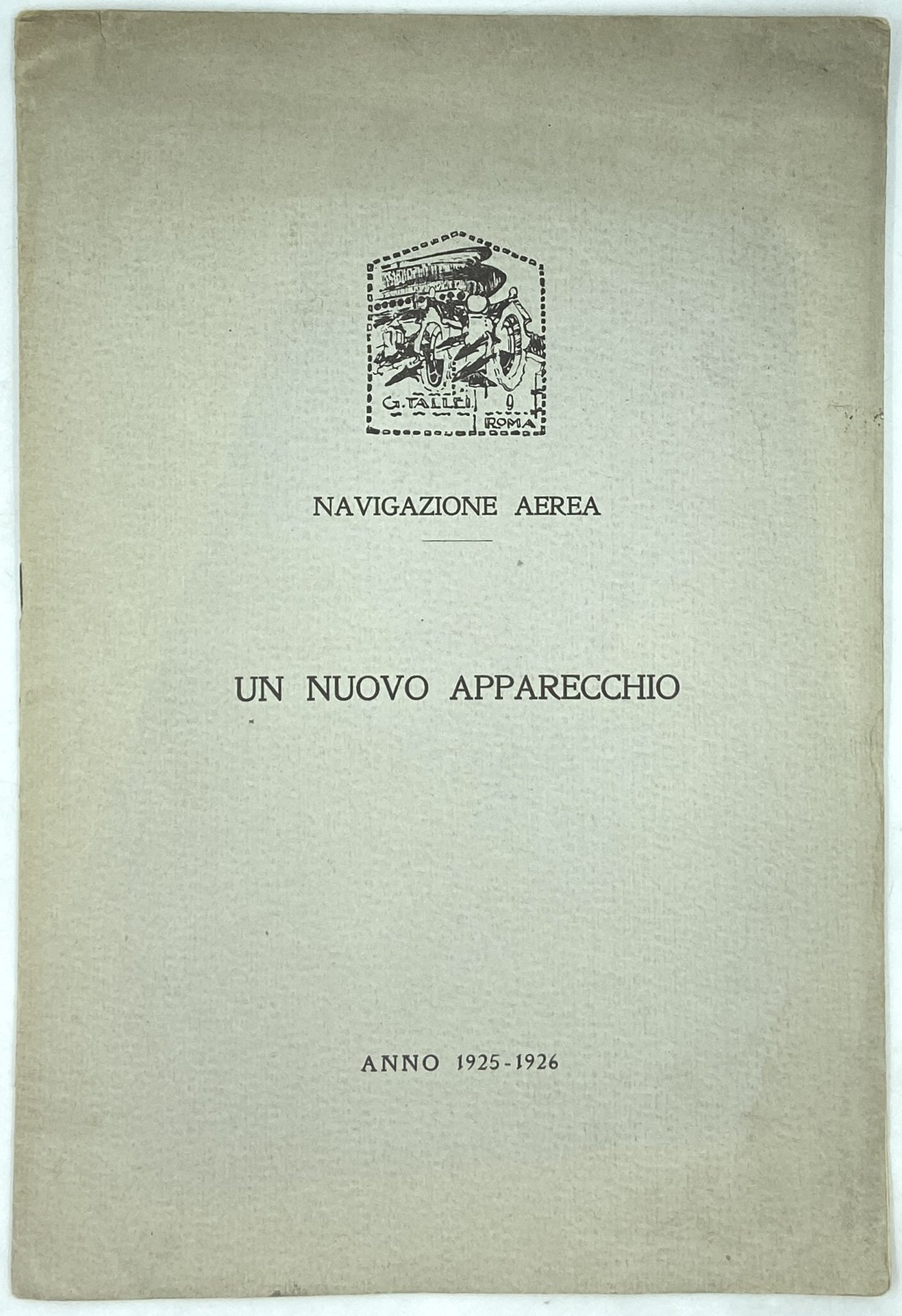 Brossura editoriale con fregio, cm 31.5 x 21.5, pp (24) illustrate in nero. Opuscolo pubblicato in proprio dall’autore, l’inventore Guido Tallei, che presenta il progetto dell’Aeronave Tallei nei due modelli, un Tipo I (piccolo) illustrato attraverso tre fotografie di un modello in scala, e un Tipo Grande, sorta di dirigibile-idrovolante in alluminio con cinque coppie di ali, lungo 130 metri, che avrebbe dovuto trasportare circa 1000 persone attraverso l’Atlantico senza scali. Negli anni '30 Tallei, che non poté mai realizzare i propri brevetti, sviluppò ulteriormente le proprie idee nel «diri-disco-rota», velivolo ad ala circolare rotante ripiena di gas che ottenne una certa eco e apparve sulle pagine di Popular Mechanics. Estremamente raro, una sola copia segnalata in ICCU (Nazionale di Firenze); in Boffito (Biblioteca Aeronautica Italiana I, p. 429) descritto erroneamente.