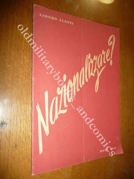 DESCRIZIONE: Jandi Sapi Roma 1947, br. ed., pp. 31 in 8°. Cosa si deve pensare di questa nazionalizzazione? - Che cosa è? - La nazionalizzazione e il monopolio - La nazionalizzazione e l'individuo - La nazionalizzazione e i suoi risultati in Europa e nel Mondo - ecc. CONDIZIONI: Ottime/Perfette, piega centrale. PESO / WEIGHT: 50 gr. without package