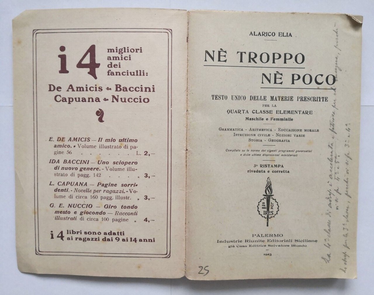 NÈ TROPPO NE POCO di Alarico Elia 1923 Salvatore Biondo Libro scuola elementare