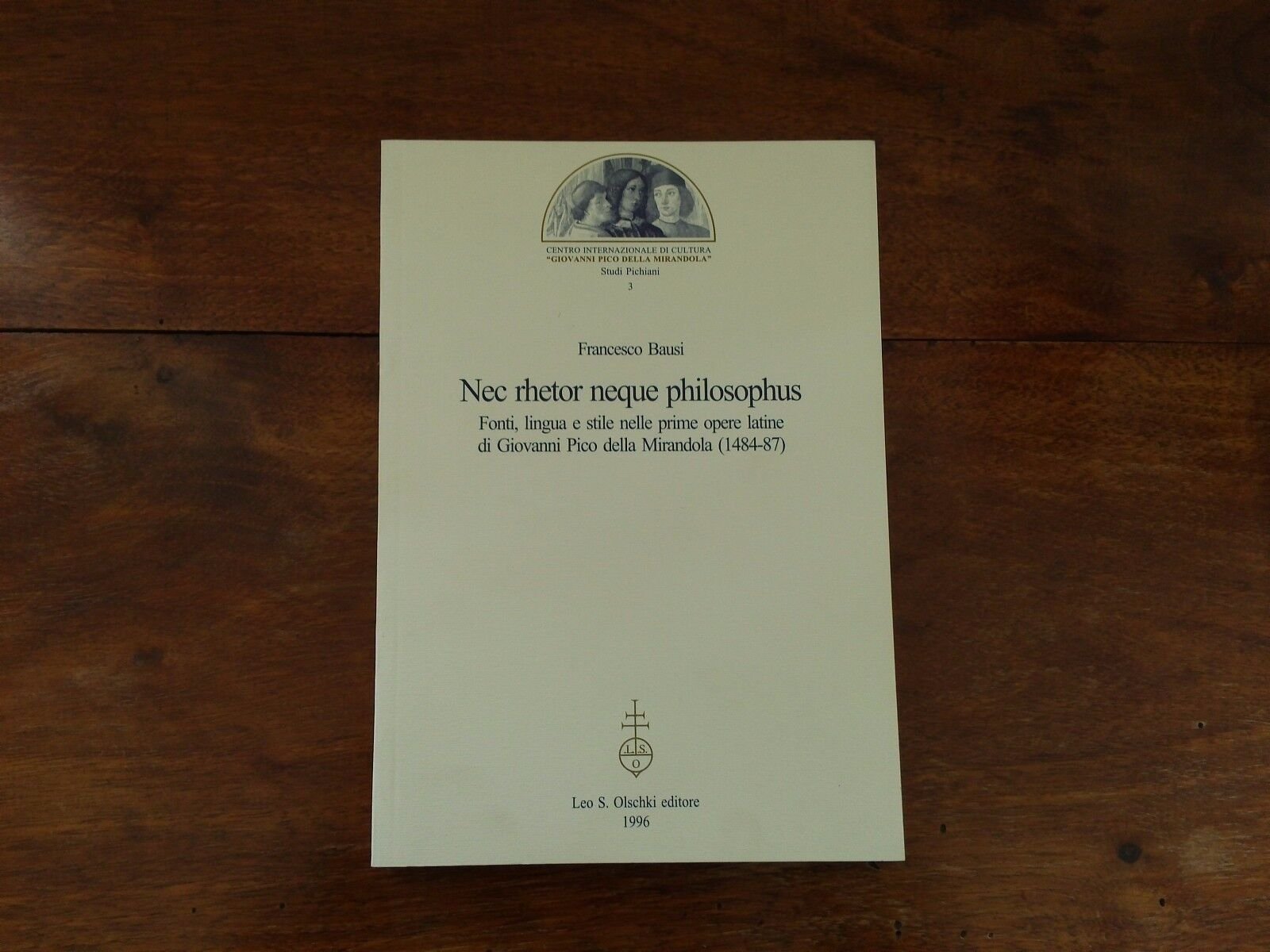 Franco Bausi Nec rhetor neque philosophus. Fonti, lingua e stile nelle prime opere latine di Giovanni Pico della Mirandola Olschki Prima edizione 1996 Libro in ottime condizioni, minimi segni del tempo. Non esitate a contattarci per altre foto o richieste. Saremo lieti di soddisfare ogni vostra esigenza.