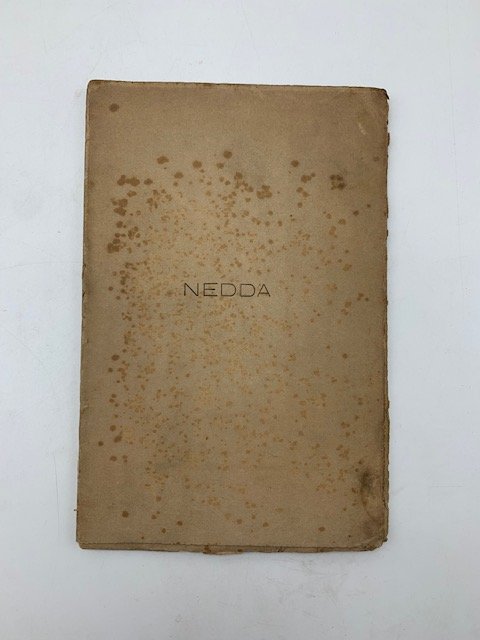 In 16 (cm 12,5 x 19), pp. 61 + (1) + (2) di pubblicita' editoriale. Bruniture diffuse al primo foglio con l'occhietto e al frontespizio, bruniture sparse alle altre pagine. Piatto posteriore in brossura originale (con restauro all'angolo inferiore interno), piatto anteriore mancante e rifatto con carta d'epoca. Edizione originale in volume di questo racconto originariamente pubblicato sulla "Rivista italiana di scienze, lettere ed arti" come indicato anche al verso di pagina 61. La novella, ambientata nel mondo dei contadini siciliani (per i critici si tratta della svolta di Verga verso il Verismo), racconta la tragica vicenda di Nedda, raccoglitrice di olive, perseguitata dalla poverta' e dalla morte dei suoi cari.