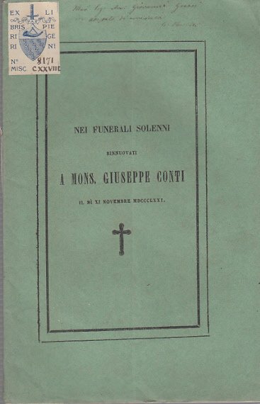 NEI FUNERALI SOLENNI RINNUOVATI A MONS. GIUSEPPE CONTI IL Dì XI NOVEMBRE MDCCCLXXI