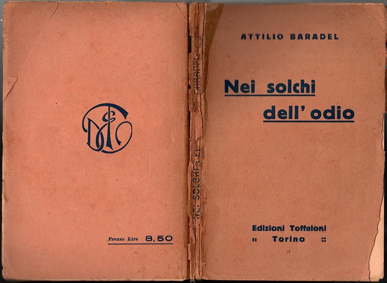 NEI SOLCHI DELL'ODIO di Attilio Baradel. Toffaloni Editore, 1925. 186 pagine. Copertina editoriale in brossura. Stato di conservazione: buono (pagine ingiallite, sottolineature a matita colorata, copertina sciupata con strappi e mancanze, legatura allentata) Libro usato saggistica I guerra mondiale prima storia