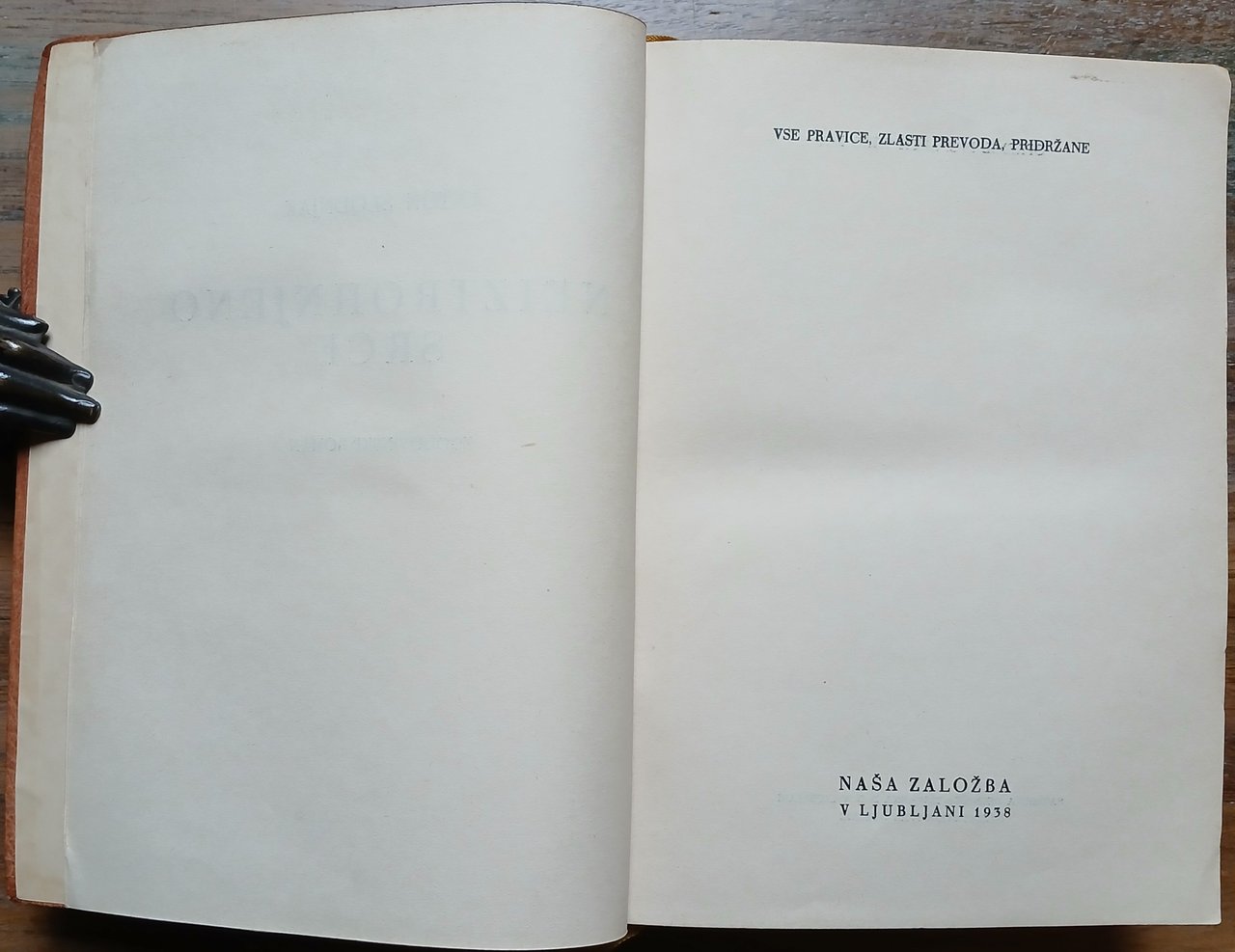 (Slovenia - Letteratura slovena) In 8° piccolo (cm 20 x 15), legatura editoriale in cartoncino goffrato similpelle color ocra chiaro con titoli impressi in nero e rosso, taglio di testa colorato, segnalibro in tessuto, pp. 382,(2). Libro in lingua slovena. Prima edizione. Volume solido e ben conservato.