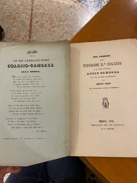 nel giorno che giovanni dr. colosio e la nobile donzella adele gambara una vita di gioia incominciano con questi versi gli auguri del cuore si esprimono