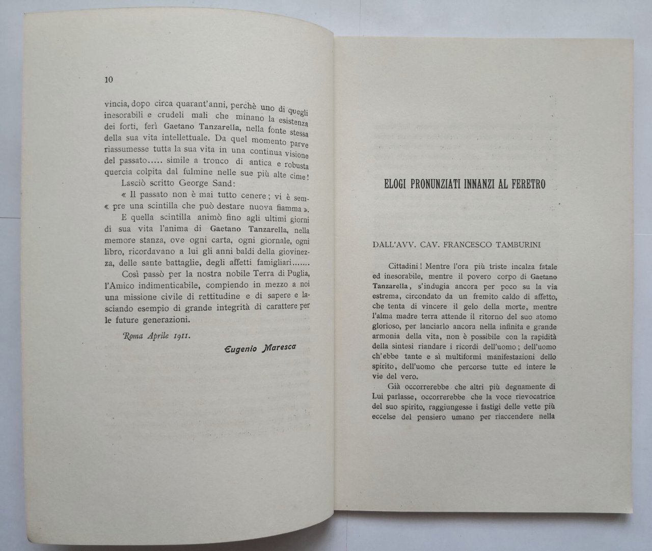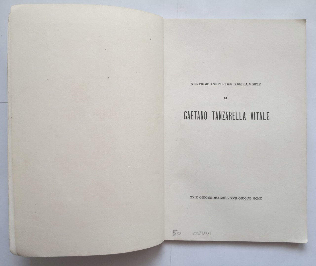 NEL I ANNIVERSARIO DELLA MORTE DI GAETANO TANZARELLA VITALE 1911 Libro Ostuni