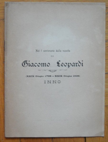 *Nel I centenario della nascita di Giacomo Leopardi (XXIX Giugno 1798 - XXIX Giugno 1898) INNO