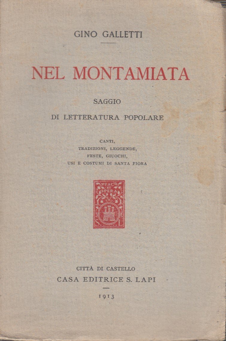 Nel Montamiata. Saggio di letteratura popolare. Canti, Tradizioni, Leggende, Feste, Giuochi, Usi e costumi di Santa Fiora
