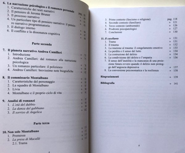 Soggetti: Psicologia, Critica letteraria, Analisi psicologica, Romanzi, Personaggi, Lettura, Interpretazione, Psicanalisi, Assurdo, Tematiche, Intreccio, Studi culturali, Narrativa, Letteratura italiana, Metafore, Simbolismo, Traumi, Jerome Bruner, Romanzo, Angelica, Macallè, Commissario Montalbano, Livia, Sicilia, Gialli, Fascismo, Religione, Angoscia, Resilienza, Delirio, Empatia, Danza del gabbiano, Narrazione psicologica, Famiglia, Ambiente, Poliziesco, Dissonanza cognitiva, Perdita, Lutto, Morte, Attaccamento, Separazione, Relazioni, Costruzione, Personalità, Scrittura, Psicopatologia, Racconti, Mimica, Saggi, Bibliografia, Studi Culturali, Libri Vintage Fuori Catalogo, Andrea Camilleri, Successi editoriali, Introspezione, Storie, Psychology, Literary criticism, Psychological analysis, Novels, Characters, Reading, Interpretation, Psychoanalysis, Absurd, Themes, Intertwining, Cultural studies, Narrative, Italian literature, Metaphors, Symbolism, Trauma, Commissioner, Sicily, Yellow, Fascism, Religion, Anguish, Resilience, Delirium, Empathy, Psychological storytelling, Family, Environment, Police, Cognitive dissonance, Loss, Mourning, Death, Attachment, Separation, Relationships, Construction, Personality, Writing, Psychopathology, Stories, Mimic, Essays, Bibliography, Cultural Studies, Out of Print Books, Editorial successes, Introspection, Stories