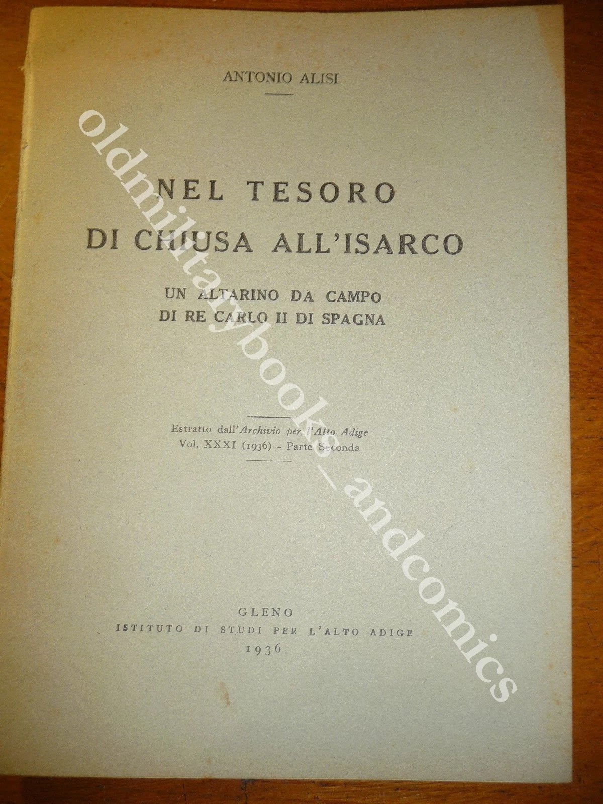 DESCRIZIONE: Ist. Studi Alto Adige Gleno 1936 br. ed. pp. 15, 4 ill. b/n f.t. in 8°.