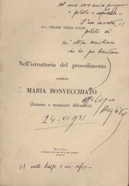 Nell'istruttoria del procedimento contro Maria Bonvecchiato (Istanze e memorie difensive)