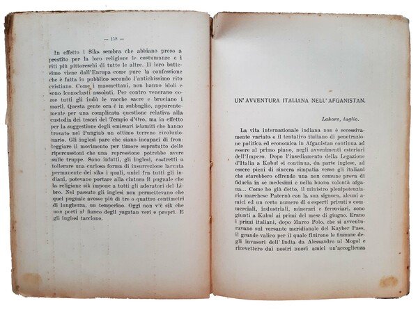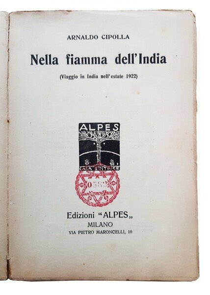 in-8° (cm 20 x 14); pp. 258, (1), (1 b.); front. a caratteri neri con marca tipografica; leg. in brossura editoriale con ill.ne al piatto, titolo in nero al dorso liscio e al piatto ant.; prima edizione di questo interessante racconto di viaggio, a cura di Arnaldo Cipolla (1877-1938, giornalista, scrittore e viaggiatore, nato a Como e morto a Roma). Prov.: dedica autografa dell'Autore manoscritta all'occhietto nel gen. 1923. Rif.: IT\ICCU\RAV\0316431. Cond.: segni d'uso, lentezza della leg., riparazione alla cerniera e al bordo del piatto ant., presenza di macchie; opera nel complesso in buone condizioni.