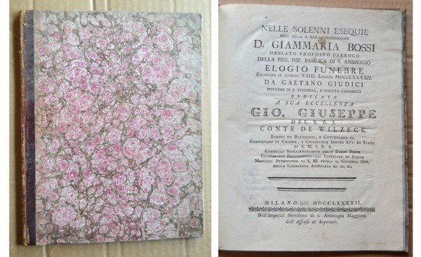 *Nelle solenni esequie dell'Ill.mo e Rev.mo Monsignore D. Giammaria Bossi obblato proposto Parroco della Reg. Imp. Basilica di S. Ambrogio Elogio Funebre. Recitato il giorno XXIII luglio MDCCLXXXXII da Gaetano Giudici Dottore di S. Teologia e Diritto Canonico dedicato a sua eccellenza Gio. Giuseppe del S. R. I. Conte De Wilzeck.