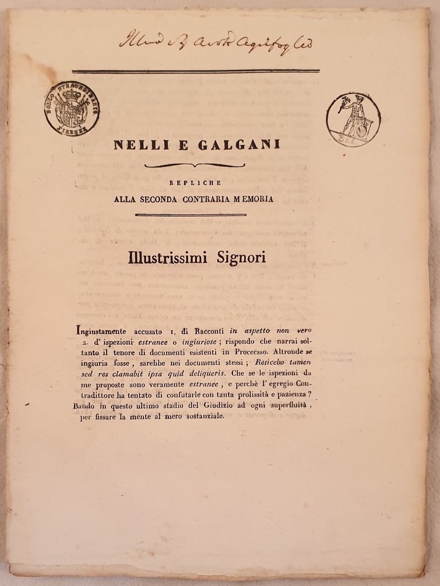 NELLI E GALGANI REPLICHE ALLA SECONDA CONTRARIA MEMORIA