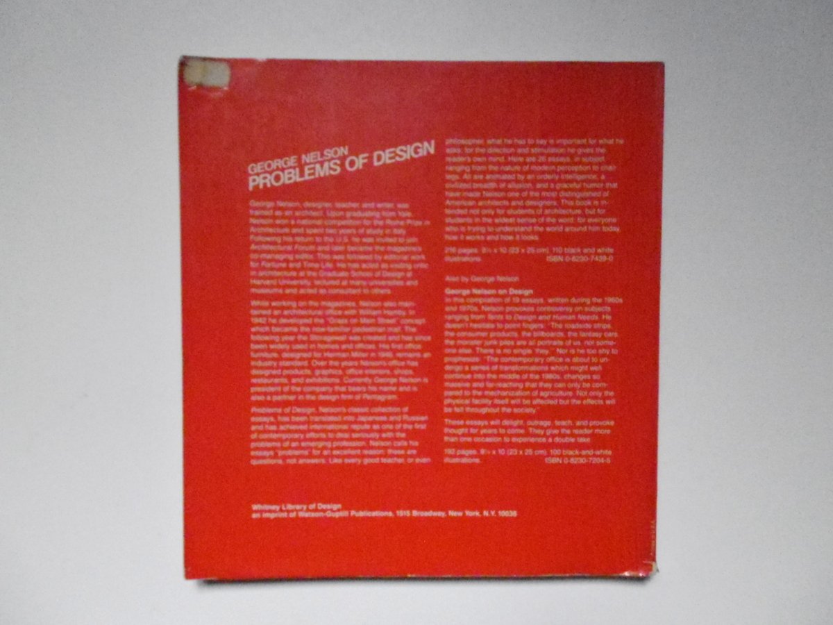 G. Nelson, Problems of Design Whitney Library of Design, New York, 1979; cm 25,5x23,5; pp. 203; ill. n. t. e f. t. in b. n. Cartoncino edit. rosso. Condizioni di conservazione Esemplare in ottimo stato di conservazione. Alcune abrasioni al margine inf. del dorso. Una piega agli angoli destri della coperta. Alcuni corti strappi ai margini del fronte della coperta. In lingua inglese. SETT165.L23417G