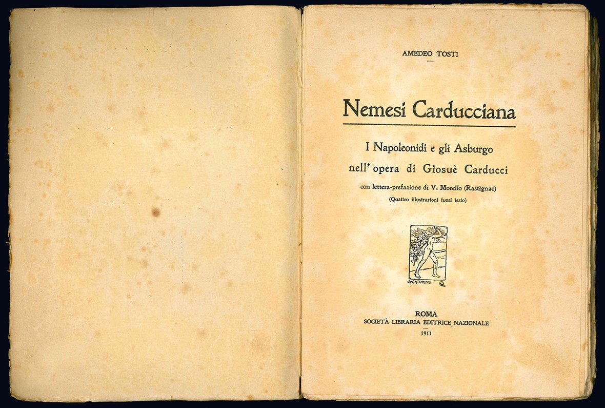 Nemesi carducciana. I Napoleonidi e gli Asburgo nell'opera di Giosuè Carducci. Con lettera-prefazione di Vincenzo Morello (Rastignac). (Quattro illustrazioni fuori testo).
