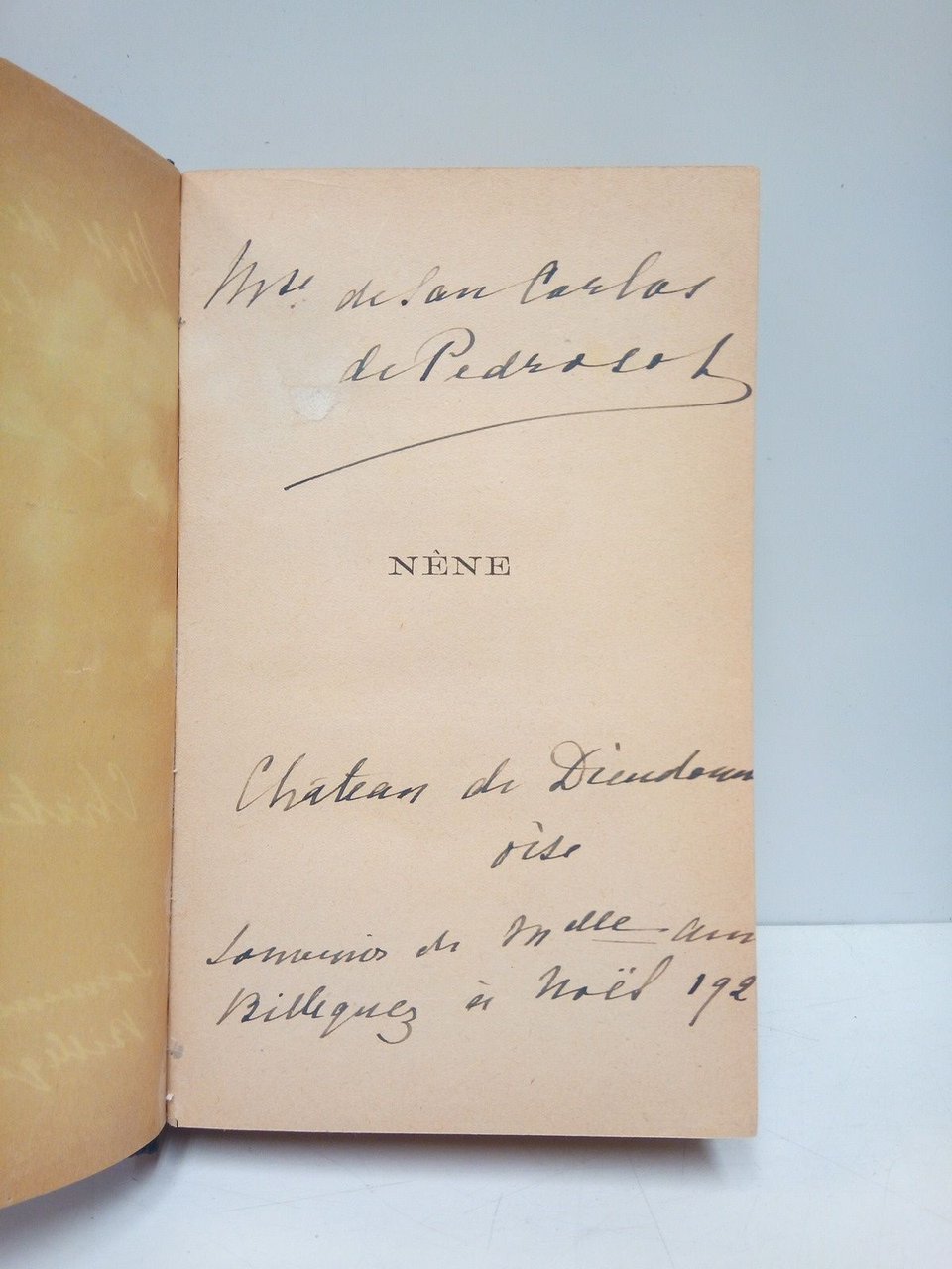 1ª Ed. normal.- Paris: Plon-Nourrit et Cie. Eds., [ca. 1920].- 256 p.; 8º (18 x 11,8 cm); Texto en francés; Tela Cartoné, conservando cubierta anterior original.* Cubiertas ligeramente rozadas en los márgenes, aunque restauradas. Con una dedicatoria autógrafa de la Marquesa de San Carlos de Pedrosos en la portadilla, que está cortada en su margen externo debido al poco cuidado del encuadernador. LITERATURA Y ESTUDIOS LITERARIOS EXTRANJEROS DE LOS SIGLOS XVI-XXI