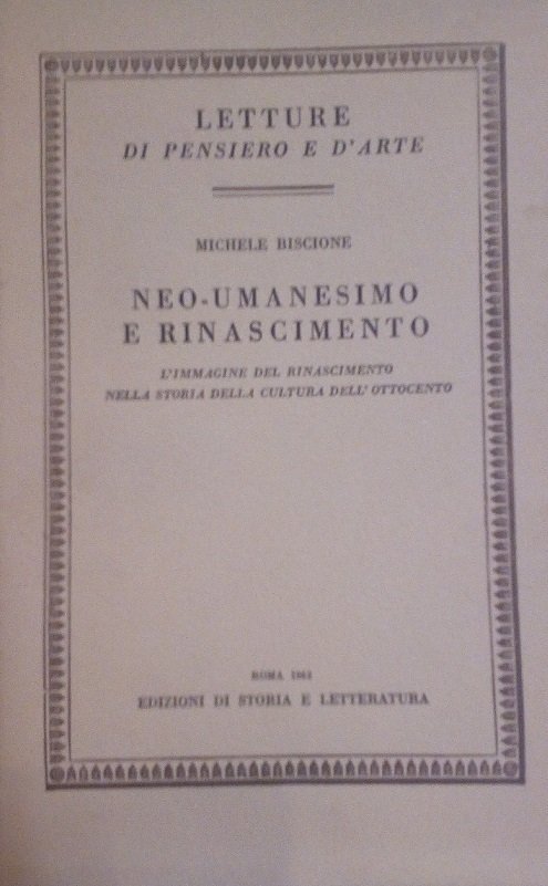 NEO-UMANESIMO E RINASCIMENTO - L'IMMAGINE DEL RINASCIMENTO NELLA STORIA DELLA CULTURA DELL'OTTOCENTO