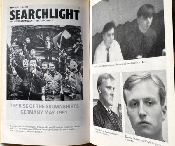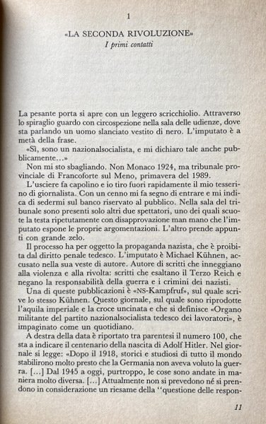 Soggetti: Politica, Scienze politiche, Ideologie politiche, Fascismo, Nazismo, Michael Kühnen, Quarto Reich, Estrema Destra, Nationalsozialismus, Neonazismo, Nazionalsocialismo, Cultura di destra, Ultranazionalismo, Razzismo, Xenofobia, Omofobia, Antiziganismo, Antisemitismo, Anticomunismo, Anticapitalismo, Antifemminismo, Germania nazista, Apologia, Adolf Hitler, Negazione, Olocausto, Aryan Nation, White Power, Potere bianco, Tsagaan Khass, Ku Klux Klan, Suprematismo bianco, Nazionalismo tedesco, Metapedia, Viertes Reich, Cultura di massa, Piergiorgio Odifreddi, Misticismo nazista, Teoria del complotto, Nuovo ordine mondiale, Storia contemporanea, Saggi storici, Inchieste, Reportage, Libri illustrati, Libri Vintage Fuori catalogo, Anni Ottanta, Anni Novanta, Documentari, Cinema, Film, La Verità rende liberi, Wahrheit macht frei, Processi, Monaco, Condanne, Omosessualità, Eversione, Complottismo, Populismo, NS-Kampfrur, Pubblicazioni, Riviste, Crimini di guerra, Simbolismo, Violenza, Rivoluzione, Rivolte, Partiti politici, Extraparlamentari, Diritto penale tedesco, Fanatismo, Manifestazioni di piazza, Ex-SS, Terzo Reich, Imperialismo, Impero, Bande, Giovani, Skinhead, Otto Riehs, Fuhrer, Europa, Stati Uniti d'America, Movimenti politici, Riunificazione, Muro di Berlino, Free-lance, Giornalismo, Odio, Razza, Dopoguerra, Agitatori, Protocolli dei Savi di Sion, Mein Kampf, Identità, Croce uncinata, Auschwitz, Sterminio, Genocidio, Olocausto, Campi di concentramento, Ebrei, Shoah, Negazionismo, Sigle, Bibliografia, Riferimento, Consultazione, Democrazia, Reti, Odessa, RAF, SIS, STASI, Servizi segreti, Massoneria, JVA, KKK, Gestapo, FHO, DDR, Sangue e onore, David Irving, Michael Carter, Antony Hancock, Kussel, Remer, Fandonia, Thies Chstophersen, Kordus, Ernst Zundel, Eriksson, Rudolf Hess, Bela Ewald Althans, Worch, Gary Rex Lauck, Ursula, Searchlight, Volantini, Manifesti, Sonntag, Schmidt, Karsten Wolter, Um inquérito explosivo, Löwenbräukeller, Négationnistes, Etude historique, Essai, Témoignage, Histoire, Analyse sociologique, Société, Extrême droite, Politique, Sociologie, 21ème siècle, Violent Extremism in Unified Germany and Beyond, West, Wolsink, Question, Refugees, Right-wing, Dresda, Francoforte, Seguaci, Xenophobia, Hebrew, Stuttgart Psalter, Judaism, Khludov Psalter, Kulaks, Dreyfus Affair, Politics, Political science, Political ideologies, Fascism, Nazism, Fourth Reich, Far Right, Neonazism, National Socialism, Right-wing culture, Ultranationalism, Racism, Homophobia, Anti-Gypsyism, Anti-Semitism, Anticommunism, Anticapitalism, Antifeminism, Nazi Germany, Holocaust, White suprematism, German nationalism, Mass culture, Nazi mysticism, Conspiracy theory, New world order, Contemporary history, Historical essays, Investigations, Illustrated books, Out of print books, Eighties, Nineties, Documentaries, Truth sets free, Trials, Monk, Conviction, Homosexuality, Eversion, Conspiracy, Populism, Publications, Magazines, War crimes, Symbolism, Violence, Revolution, Revolts, Political parties, Extra-parliamentary, German criminal law, Fanaticism, Street demonstrations, Third, Imperialism, Empire, Gangs, Youth, Europe, USA, Political Movements, Reunification, Berlin Wall, Journalism, Hate, Race, Postwar period, Agitators, Protocols of the Elders of Zion, Identity, Swastika, Extermination, Genocide, Holocaust, Concentration camps, Jews, Denialism, Abbreviations, Bibliography, Reference, Consultation, Democracy, Networks, Secret services, Freemasonry, Blood and Honor, Flyers, Posters, Dresden, Frankfurt, Followers, Svastica