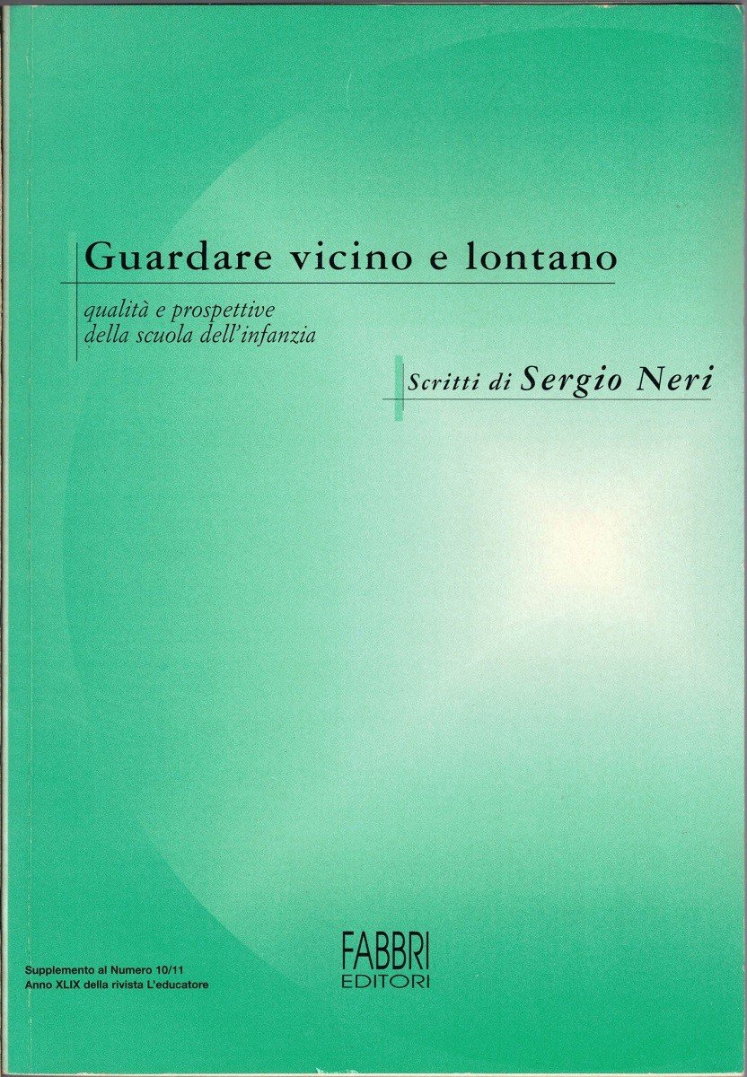 Guardare vicino e lontano. Scritti di Sergio Neri. Qualità e prospettive della scuola d’infanzia, a cura di Francesco De Bartolomeis, Fabbri Editori (R.C.S. Scuola S.p.A., Fabbri Editori), Milano 2001, pp. 140, cm 24, br. ed. Supplemento a L’educatore, anno XLIX, n. 10/11, 15 gennaio 2002. Leggera brunitura della carta, per il resto esemplare ben conservato.