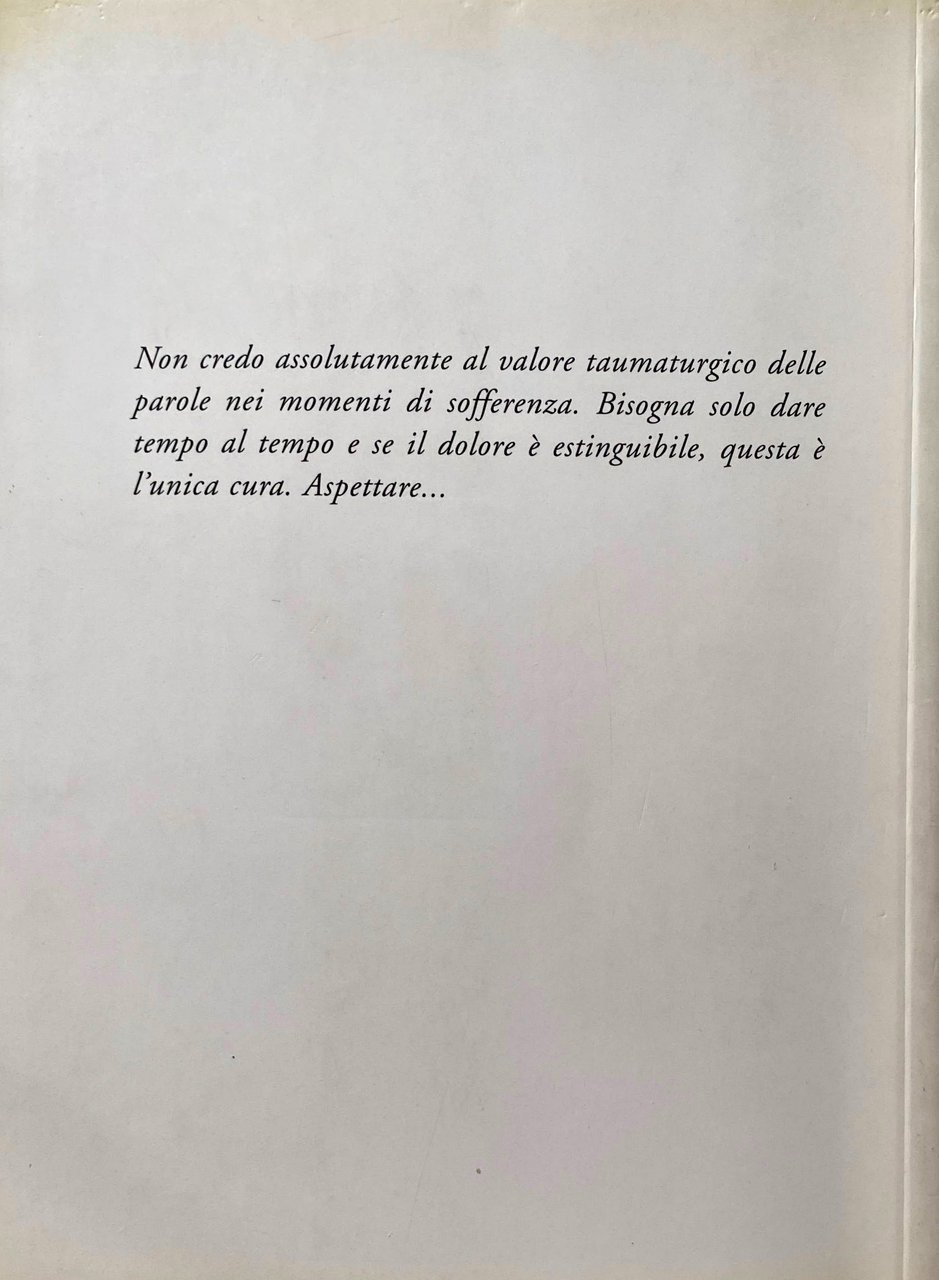 Non credo assolutamente al valore taumaturgico delle parole nei momenti di sofferenza. Bisogna solo dare tempo al tempo e se il dolore è estinguibile, questa è l'unica cura. Aspettare...