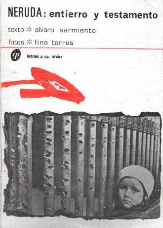 "In September 1973, Fina Torres, a photojournalist active in Venezuela at that time, was in Santiago during the coup that overthrew the government of the Unidad Popular. She photographed the damage done by the artillery to the facade of the Palacio de la Moneda, the armed soldiers in the streets, and other unsettling scenes of everyday life at the time: the cleaning of painted slogans from the walls, people lining up to buy food, the surveillance of the embassies, and the anguished seriousness of people waiting outside the morgue. Photographs of similar scenes can be found in the photobook Chili September 1973 by Koen Wessing, one of whose images is virtually identical to another taken by Torres. Both photographed a dark-haired girl standing at the door of the nourgue and showing the ID photo of a soldier. Torres decided to repeat the image to show more clearly the features of the young man who had disappeared, and Wessing did the same. Ten days after the coup, the poet Pablo Neruda died in a clinic in Santiago. Torres photographed the funeral procession, which also laid to rest the Unidad Popular and a whole era of leftist aspirations. The procession turned into a demonstration, in spite of the menacing presence of numerous armed soldiers. Fina Torres left a testimony of the vigil held around the dead body of Neruda. As she racalls, she was "the only photographer in the writer's residence on the day of his death." The house had been entered and sacked by the soldiers, an event almost prophesied in the lines "Traitor / generals: / behold my dead house" from España en el Corazon. The photos show empty shelves, ashes from the auto-da-fé, open closets, flooded rooms, and other signs of plunder and destruction - images of the desolation that the deceased poet's relatives, also captured by Torres' camera, seem not to notice" Horacio Fernandez in The Latin American Photobook, p 102 — Testi: Sarmiento Alvaro. F.to: 14x19; pagg. 152; 48 BN; rileg. brossura. Editore: Inventarios Provisionales, Las Palmas de Gran Canaria, 1973.