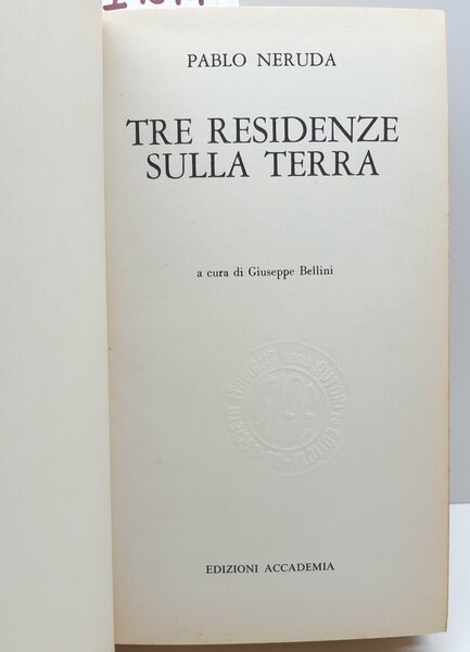 Neruda Tre residenze sulla terra Ed. Accademia 3∞ ed. 1971