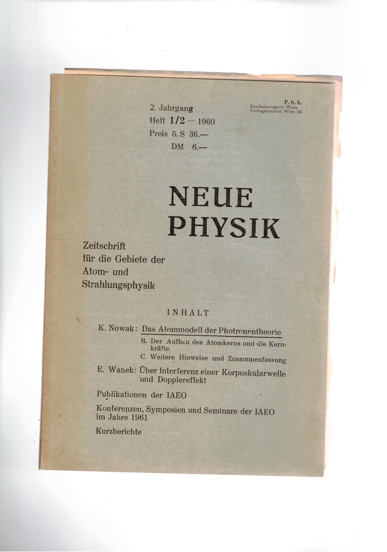 Neue Physik. Zeitschrift für die Gebiere der Atom- und Strahlungsphysik. 2 Jahrgang heft 1/2 1960.