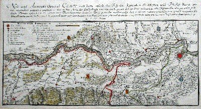 Neüe und Accurate Special Carte von dem stück des Rheins zwischen Stollhofen und Philipsburg, worin eigentlich gezeichnet werden. 1. der rechte Abriss der Landschafft wie ein orth gegen den anderen gelegen, 2. alle Rhein Insuln, so weit sich dieses Terrain erstrecket, 3. die Linien und Tranchementer, so diesen Krieg gemacht worden, nebst redouten, 4. die vornembsten weg und strassen, 5. die höhen und niedrungen oder die situation, 6. alle wässer und Bächle nebst deren brücken, 7. die Wald und feldungen, gebürg und dergleichen unterschiedliche andre remarques mehr, dergleichen in keiner Carten sonst zu finden. A: 1708.