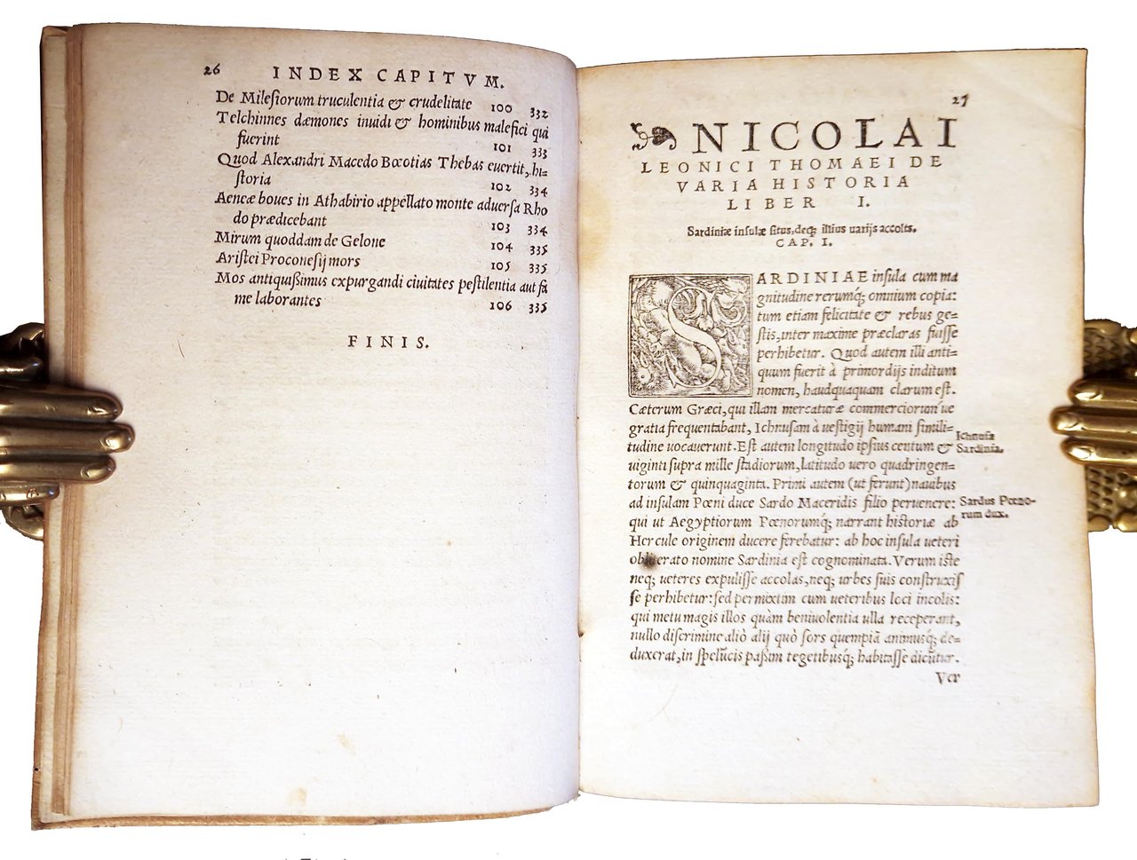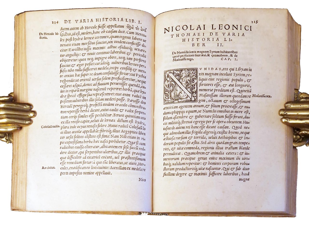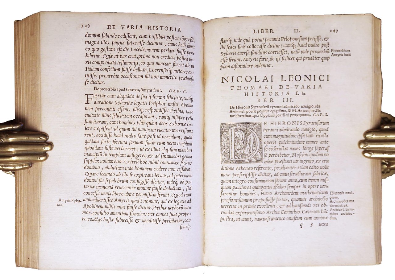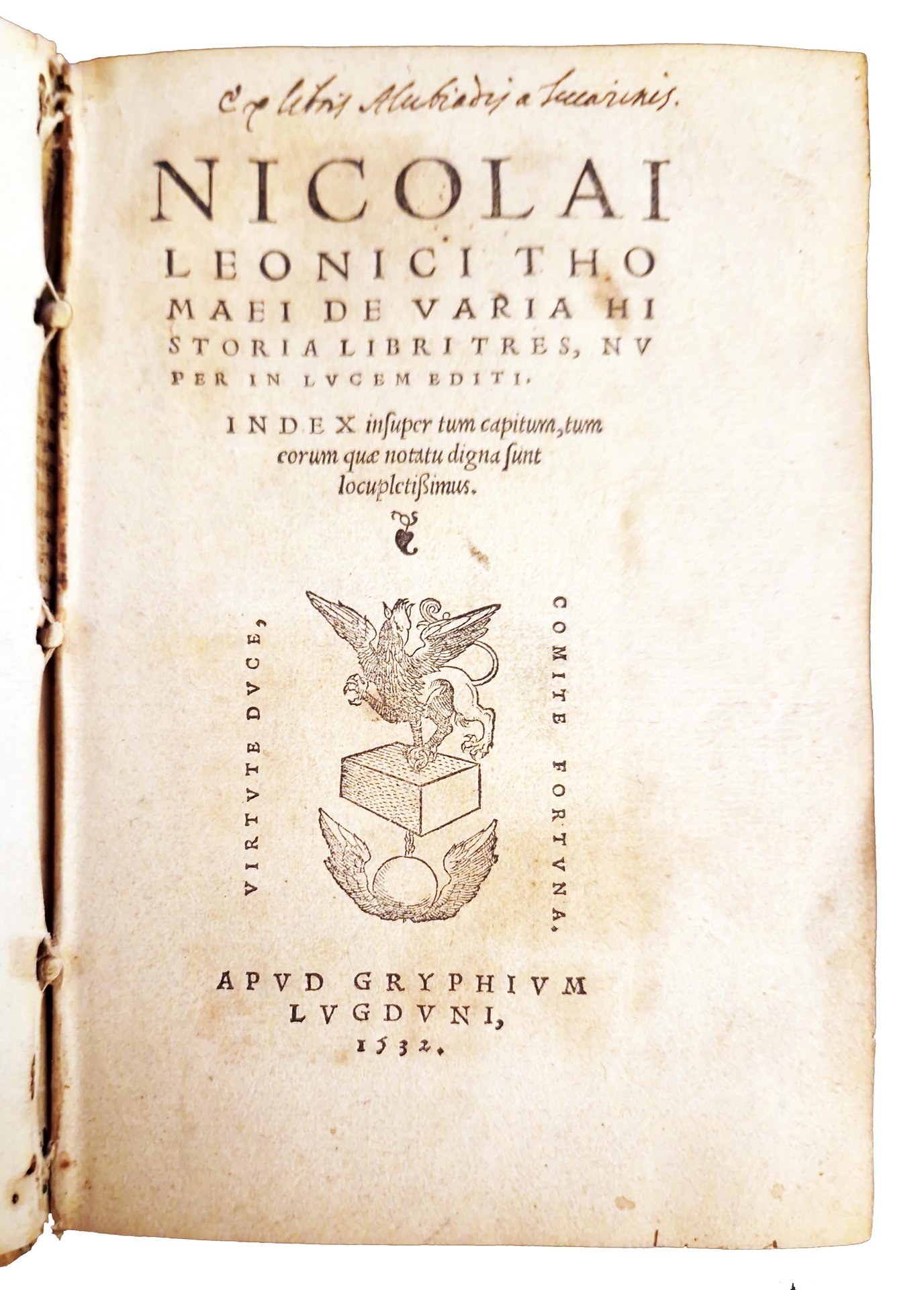 Nicolai Leonici Thomaei De varia historia libri tres, nuper in lucem editi. Index insuper tum capitum, tum eorum quæ notatu digna sunt locupletissimus.