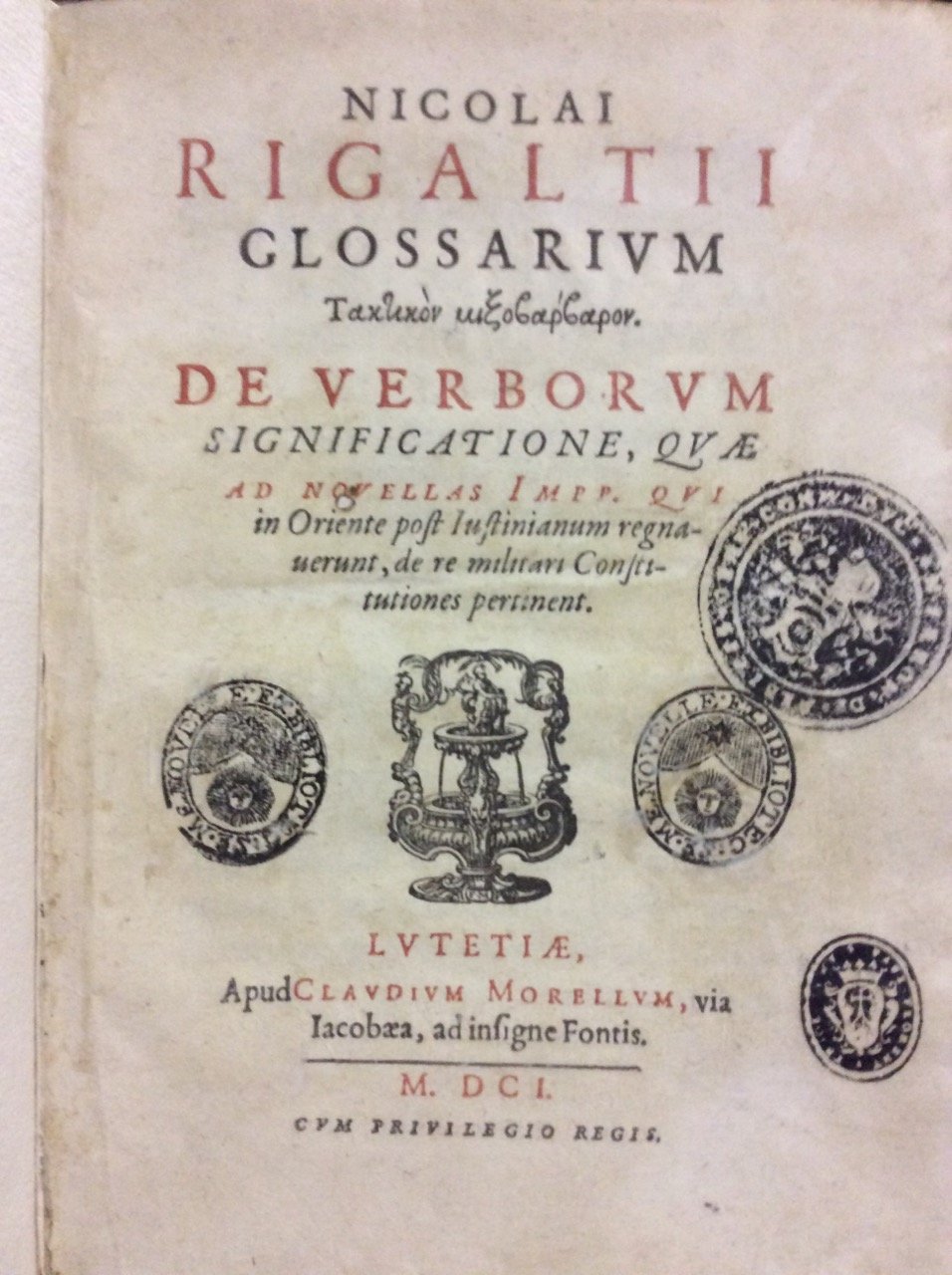 NICOLAI RIGALTII GLOSSARIUM TAKTIKON MIXOBARBARON. DE VERBORUM SIGNIFICATIONE, QUAE AD NOVELLAS IMPP. QUI IN ORIENTE POST IUSTINIANUM REGNAVERUNT, DE RE MILITARI CONSTITUTION ...