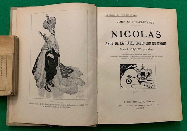 Nicolas. Ange de la Paix, Empereur du Knout. Devant l`objektif caricatural. Images russes, anglaises, francaises, italiennes, allemandes, autrichiennes, hollandaises, belges, suisses, espagnoles, portugaises, americaines, etc.
