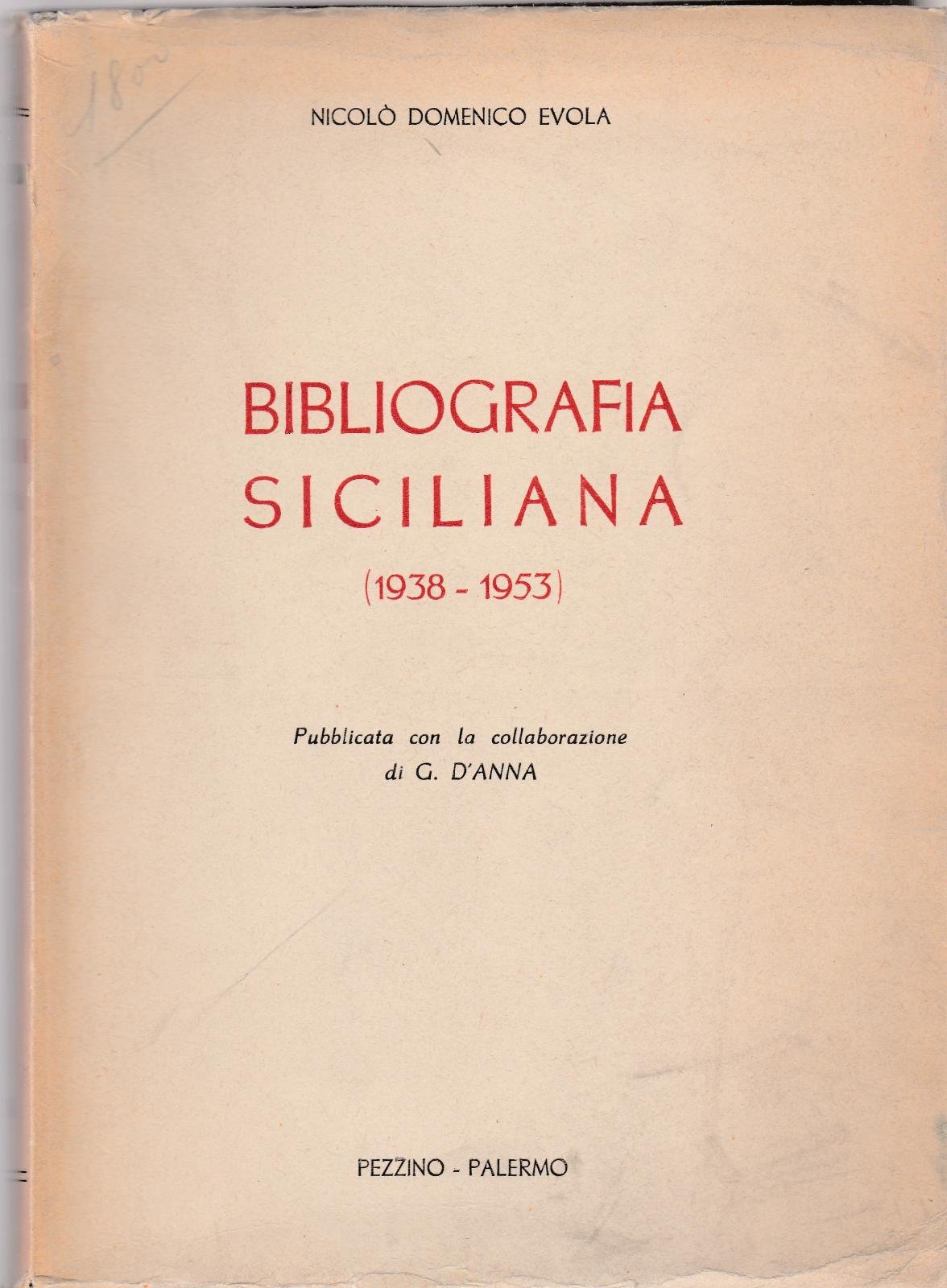 Nicolo' Domenico Evola Bibliografia Siciliana 1938-1953 Pezzino Ed. 1954 -L4337
