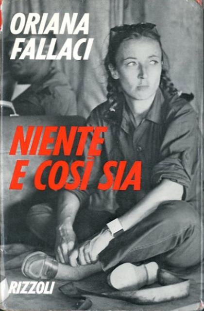 9. ed. XVI, 353 p. ; 22 x 14 cm. "La vita cos'è?" Alla vigilia della partenza per il Vietnam come inviata de "L'Europeo", nell'autunno del 1967, Oriana Fallaci tenta di rispondere alla domanda della sorellina Elisabetta: "La vita è il tempo che passa tra il momento in cui si nasce e il momento in cui si muore". Ma la risposta le sembra incompleta e l'interrogativo la accompagna durante il lungo viaggio. All'arrivo a Saigon l'atmosfera è sospesa, surreale. L'agenzia France Press diretta da Francois Pelou sembra l'unico tramite con il resto del Paese ed è da quella base che la Fallaci si muove per testimoniare l'insensatezza della guerra: dalla battaglia di Dak To all'offensiva del Tet e all'assedio di Saigon, gli orrori del conflitto sono annotati giorno dopo giorno nel suo diario. C'è il rifiuto: "Perché quasi niente quanto la guerra, e niente quanto una guerra ingiusta, frantuma la dignità dell'uomo". Quando, dopo un anno, la Fallaci torna nella sua Toscana e ritrova la piccola Elisabetta, una risposta per lei ce l'ha. "La vita è una condanna a morte. E proprio perché siamo condannati a morte bisogna attraversarla bene, riempirla senza sprecare un passo, senza addormentarci un secondo, senza temer di sbagliare, di romperci, noi che siamo uomini, né angeli né bestie, ma uomini." Pubblicato nel 1969, "Niente e così sia" è considerato un classico della letteratura, un romanzo di guerra che è un inno alla vita. (Lorenzo Cremonesi). Legatura editoriale, coperta in cartone rigido di colore rosso con impresso il titolo in nero al dorso, muto il piatto. Sovraccoperta illustrata (b/n) in carta patinata lucida con alette. Segni del tempo alla sovraccoperta con mancanza al dorso in alto e strappo alla quarta, per il resto libro in buono stato. Codice libreria 4703.