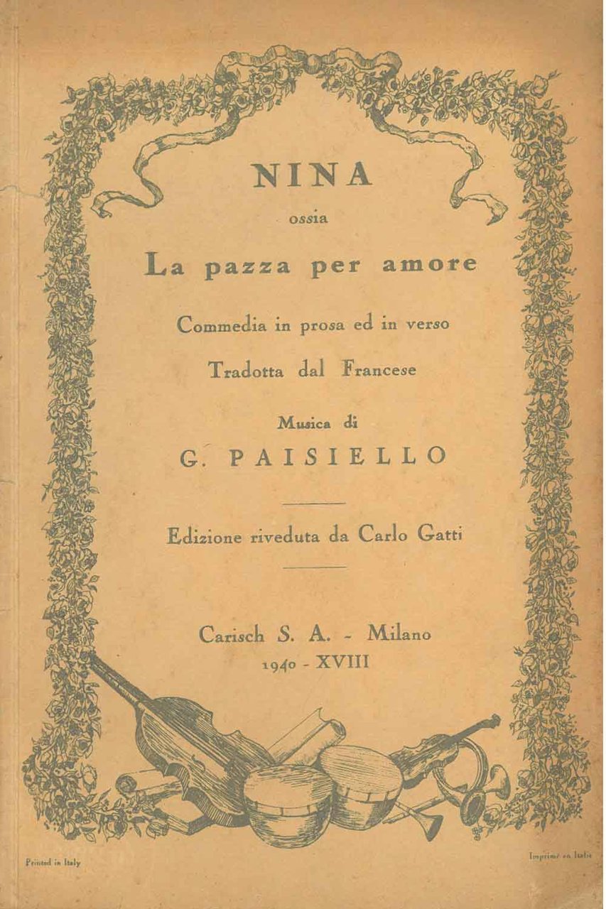 Nina, ossia La pazza per amore. Commedia in prosa ed in verso tradotta dal francese