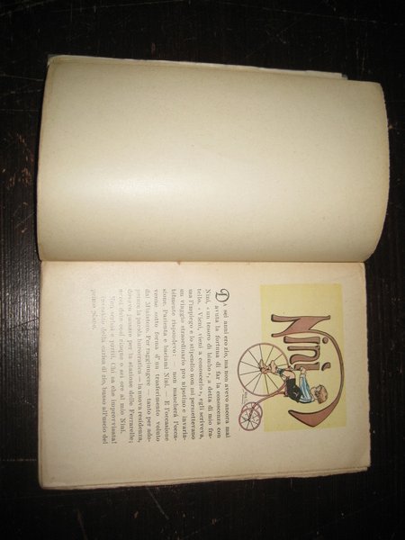In-16°, pp. (2), 93, (7), brossura editoriale figurata. Ritratto fotografico dell'autore all'antiporta. Illustrazioni a colori n.t. di Mussino. Ottimo stato. Prima edizione. Momus, o Augusto da Foligno, al secolo Augusto Piccioni (Foligno, 1874-Grosseto, 1926) fu fecondo autore di libri per l'infanzia (tra cui la 'pinocchiata ' 'Il cugino di Pinocchio') e direttore del giornale per bambini 'Pinocchio'.