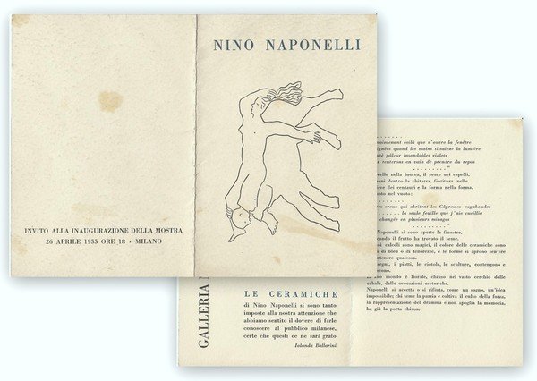 Nino Naponelli. Galleria Montenapoleone Milano. 26 aprile 1955. Invito.