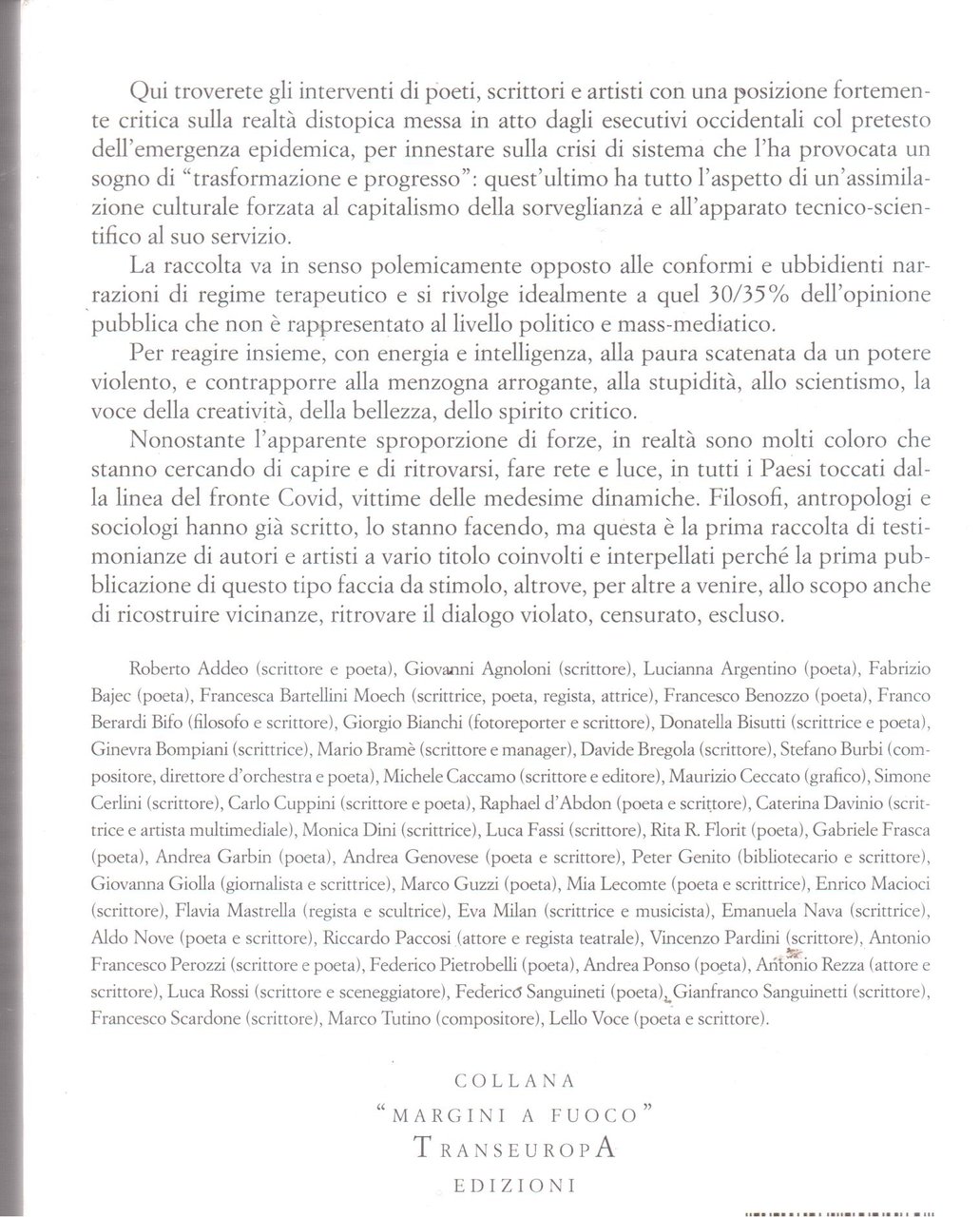 Noi siamo l'opposizione che non si sente. Scrittori, poeti, artisti che si oppongono al disegno politico innestato sull'emergenza
