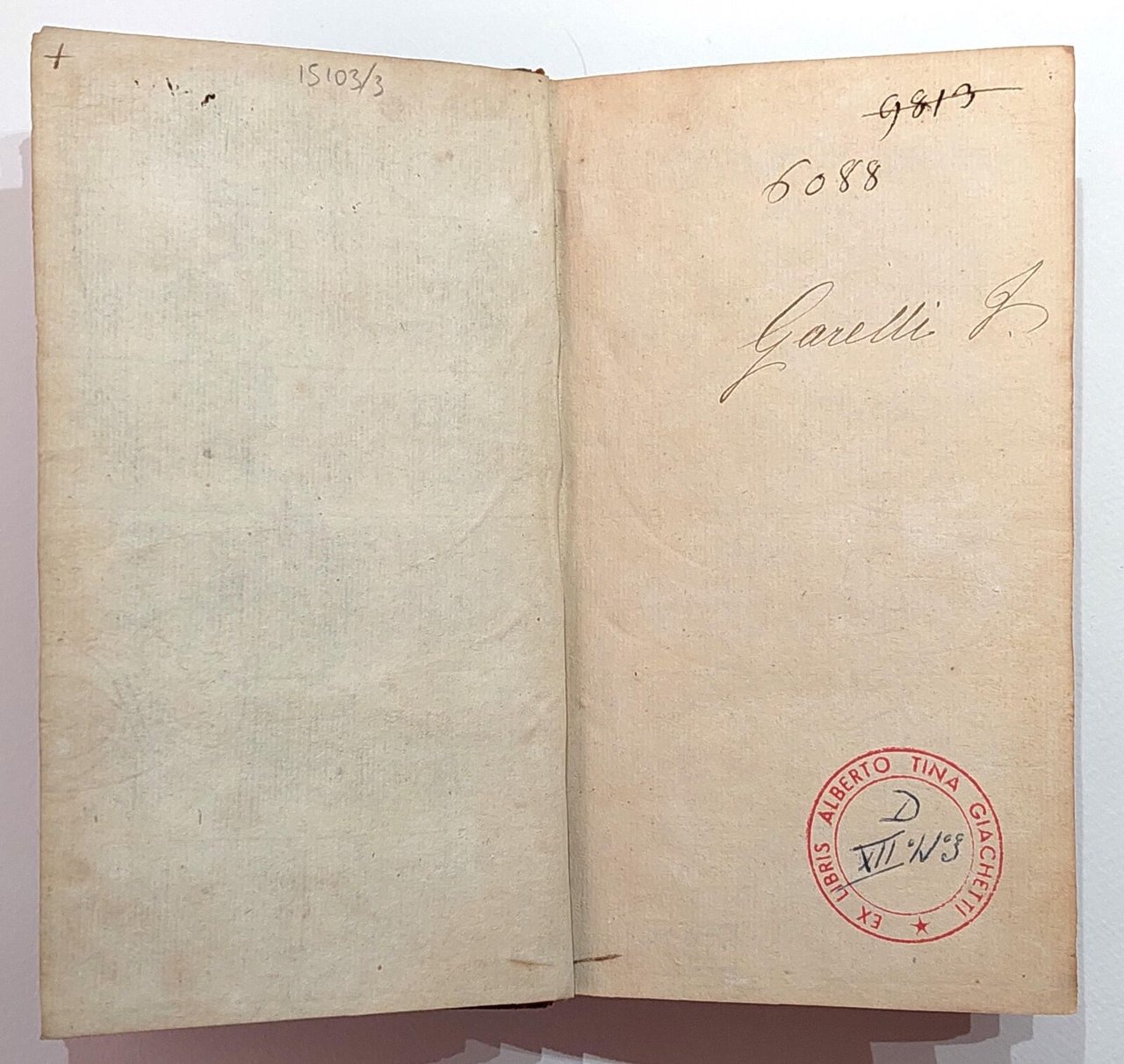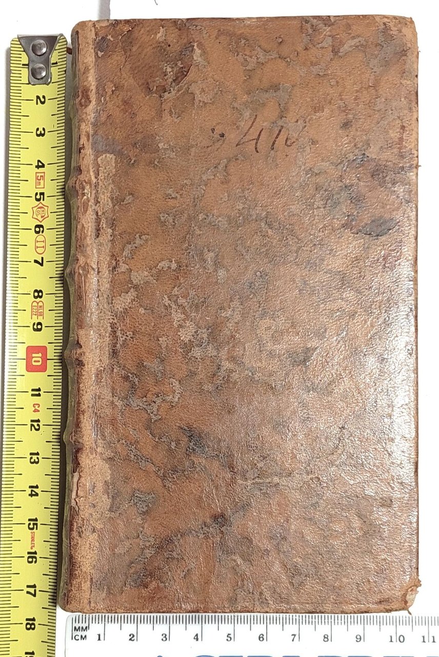 Parigi, H.L. Guerin e L. F. Delatour, Occhietto, piccolo stemma xilografico al frontespizio, testatine e capilettera incisi in legno, 8 tavole incise in rame ripiegate in fine, poche, lievi fioriture, legatura coeva in pelle screziata, dorso a 5 nervi impresso in oro con tassello, tagli rossi, leggere abrasioni alle cerniere. Firma di appartenenza al frontespizio; alla carta di guardia timbro: Alberto Tina Giachetti e firma "Garelli" n. pag. 444 dimensioni cm. 17,1 x 10,3