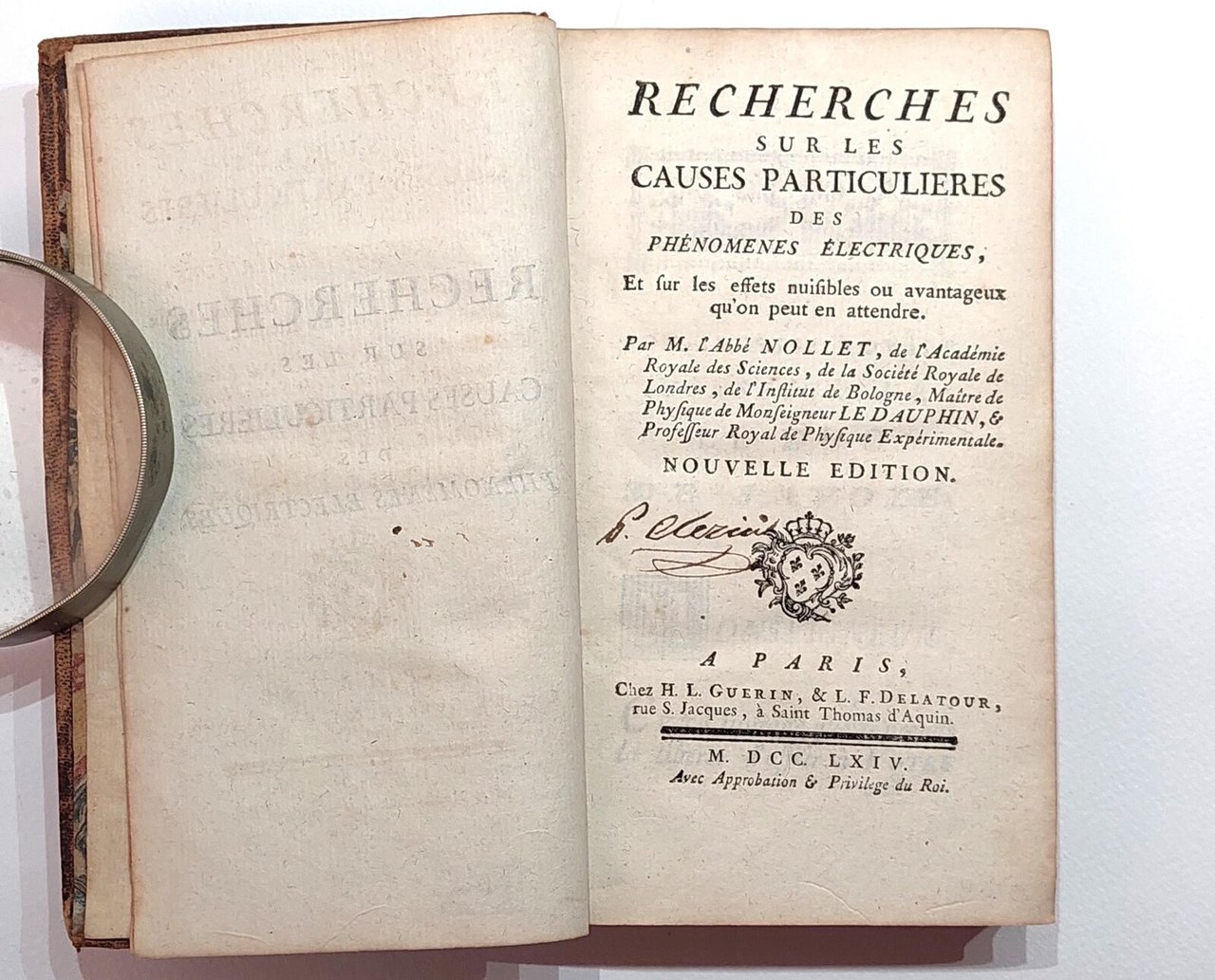 Nollet Jean Antoine Recherches sur les causes particulieres des phenomenes electriques Nouvelle edition 1764