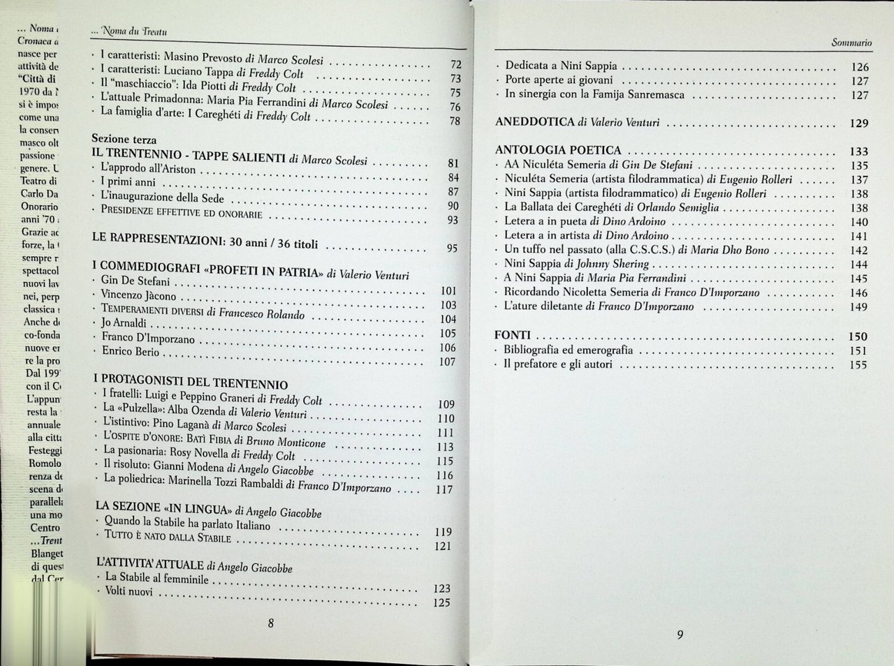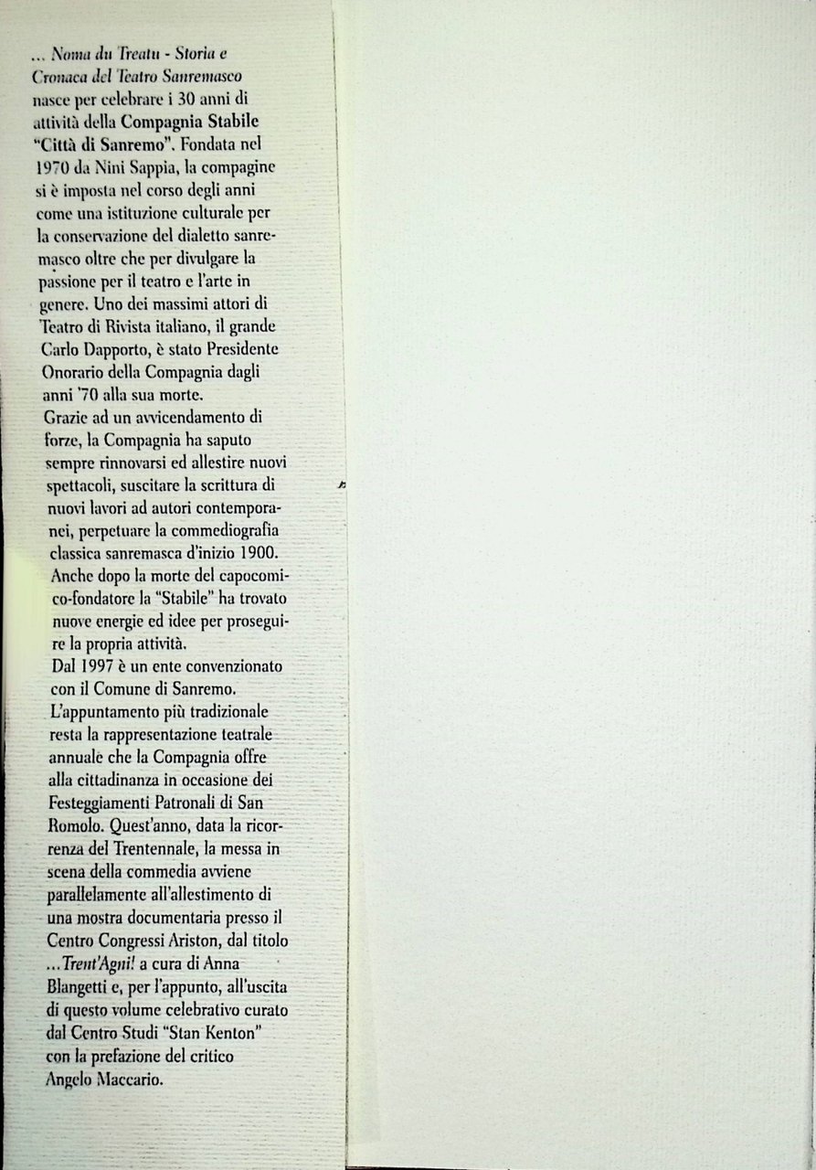 Noma Du Treatu Libro Storia e Cronaca del Teatro Sanremasco Nini Sappia Dialetto