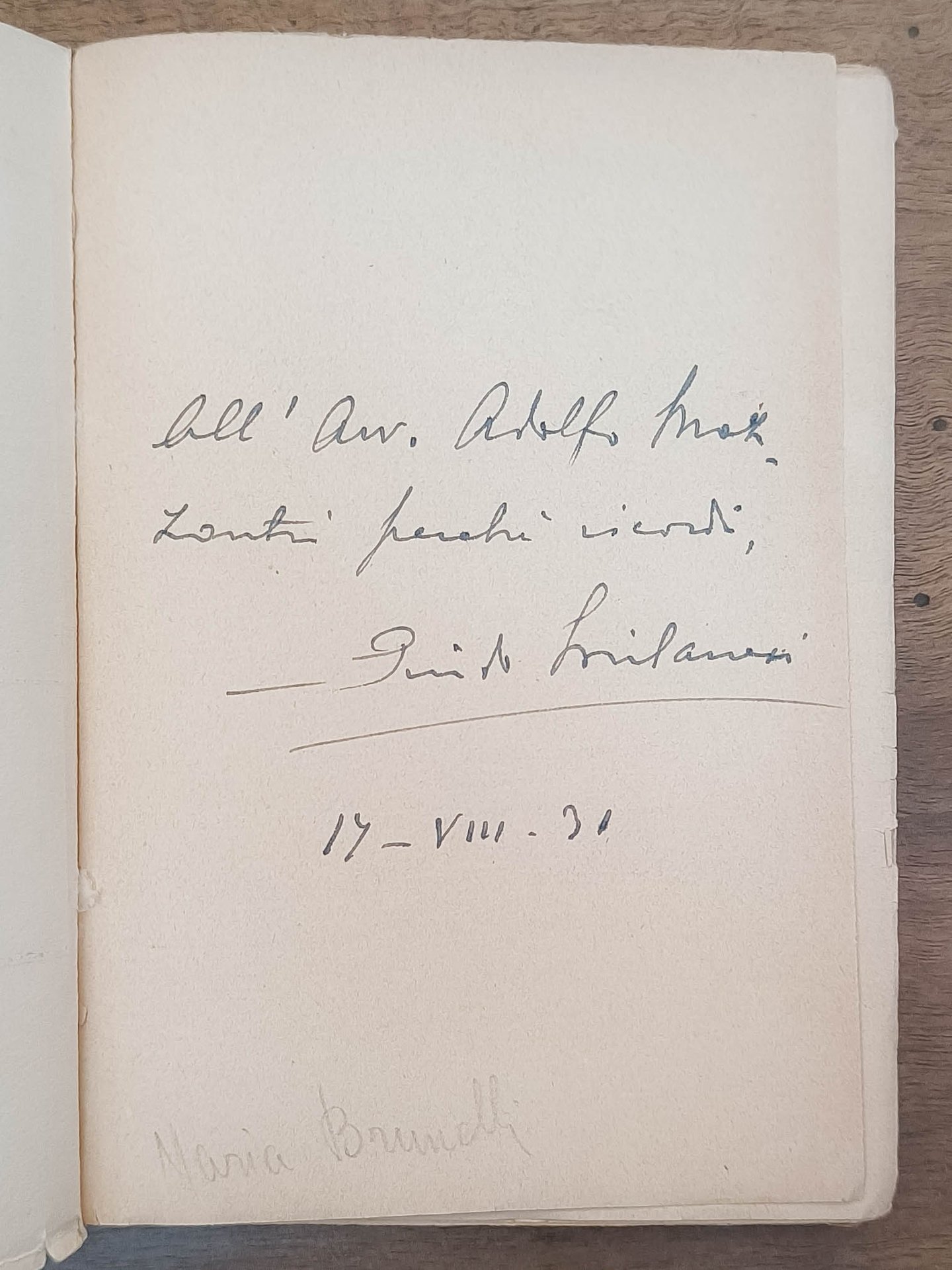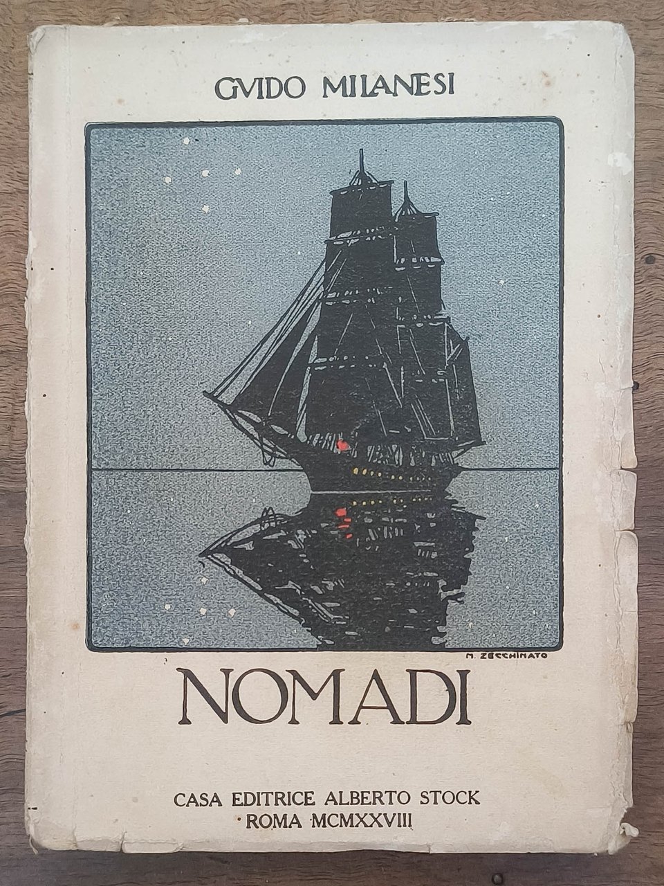 Nomadi, Roma, Stock, 1928. Cm 19,5. Pp. 282. Brossura editoriale illustrata da M. Zecchinato, leggermente usurata. Dedica autografa dell'autore "all'avvocato Adolfo Mazzanti (?) perché ricordi" datata "19 - VIII - 31".