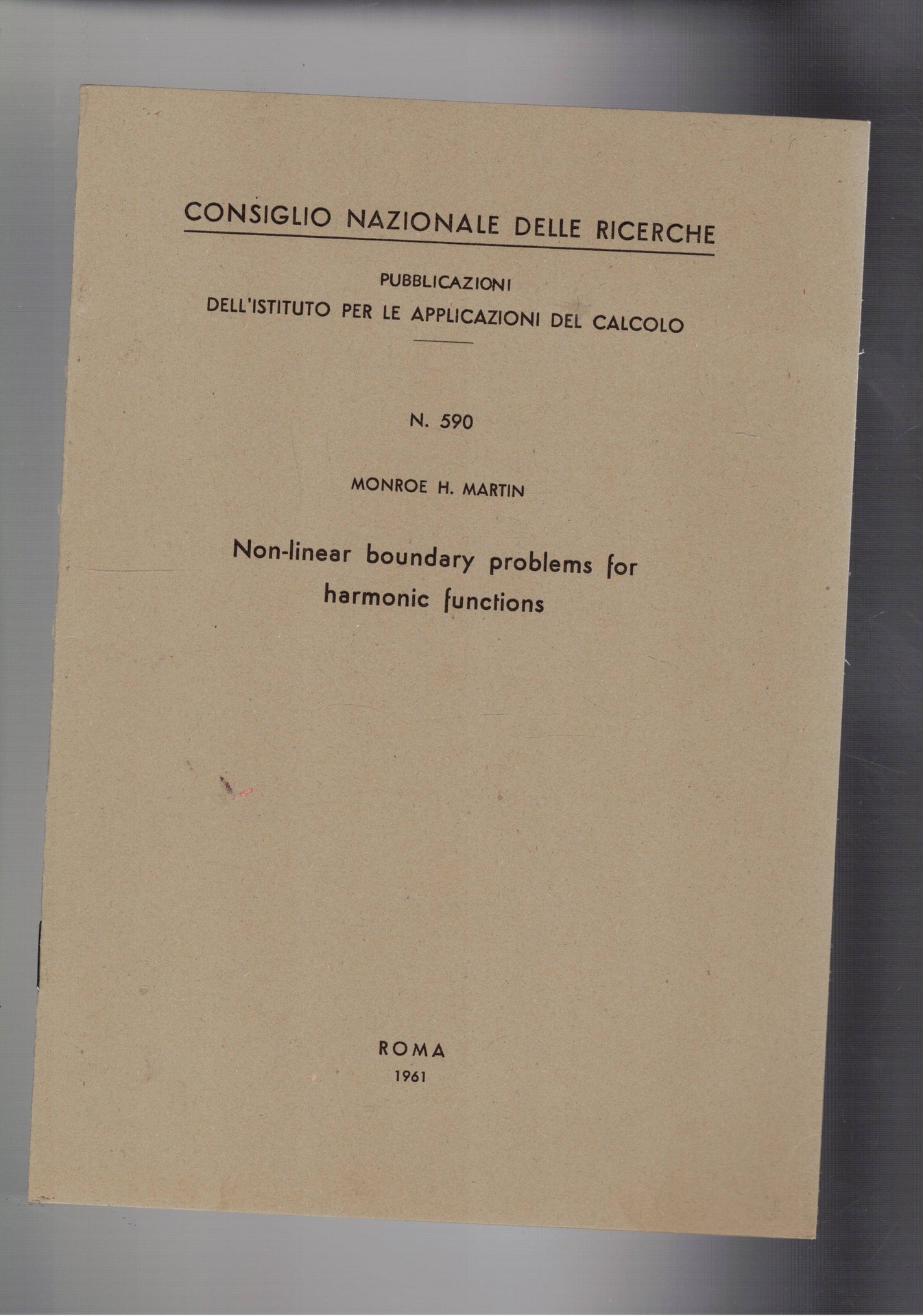 Non-linear boundhary problems for harmonic functions. Estratto.